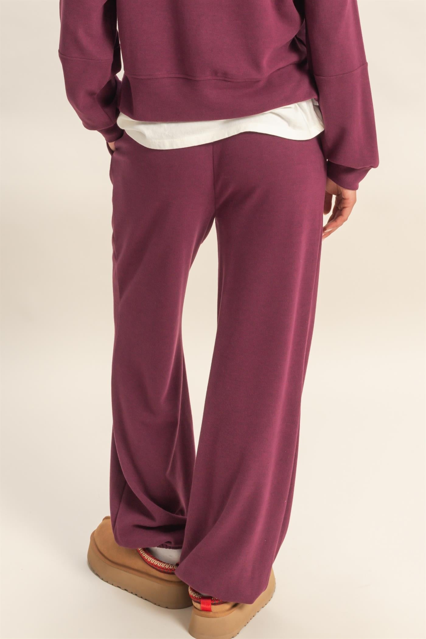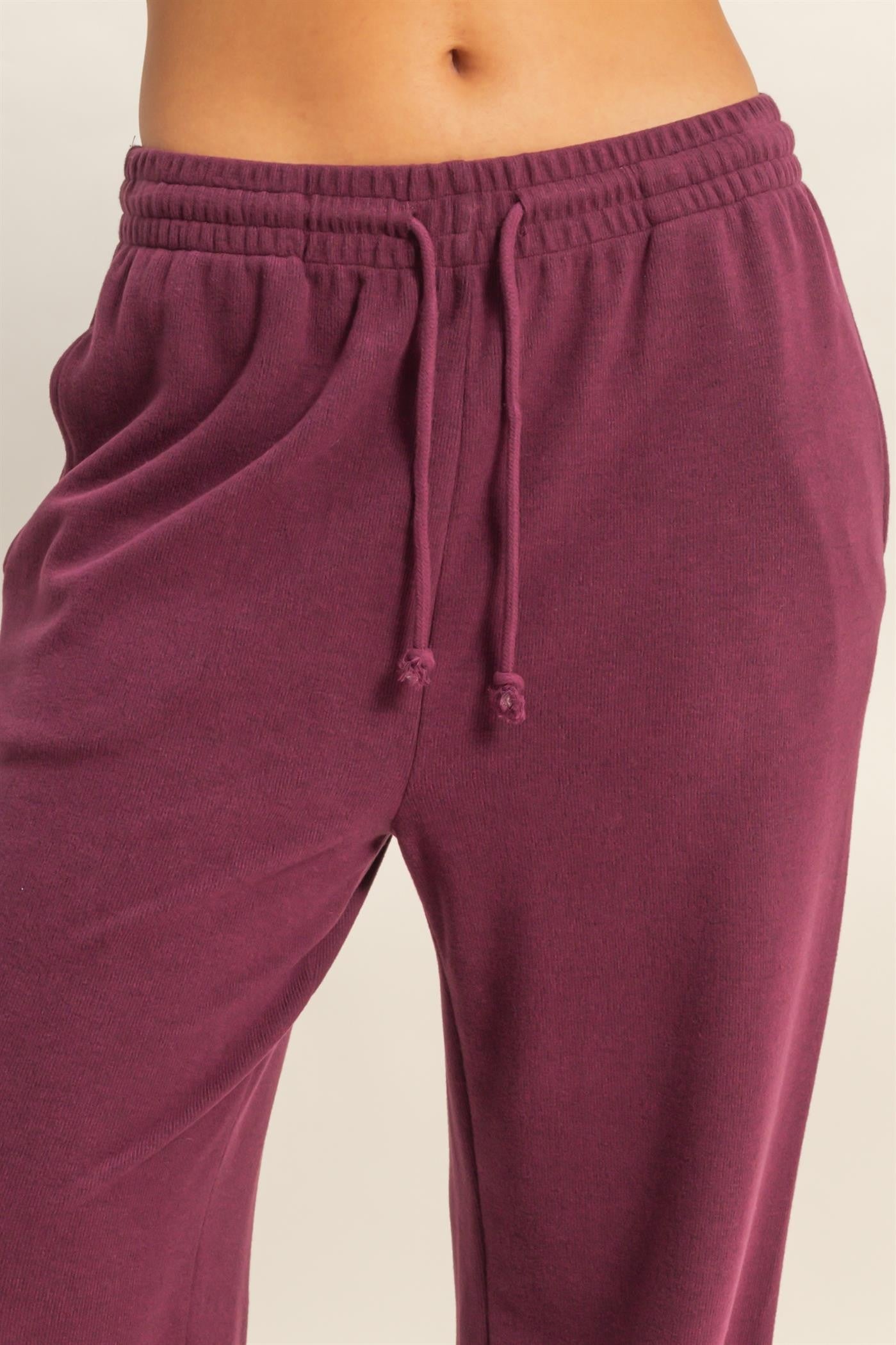 Cozy Micro Ribbed Relaxed Jogger Sweatpants - Dark Cherry