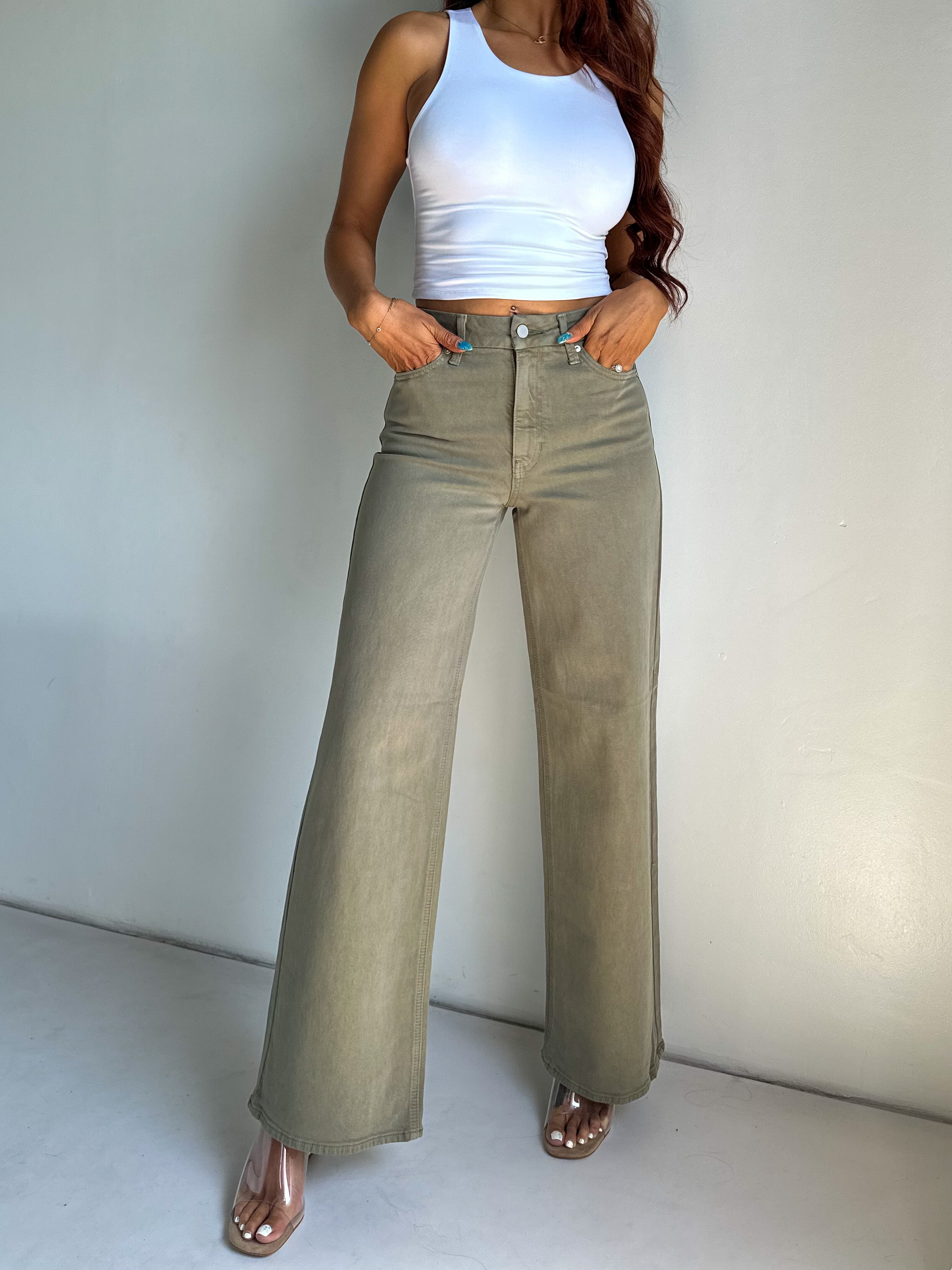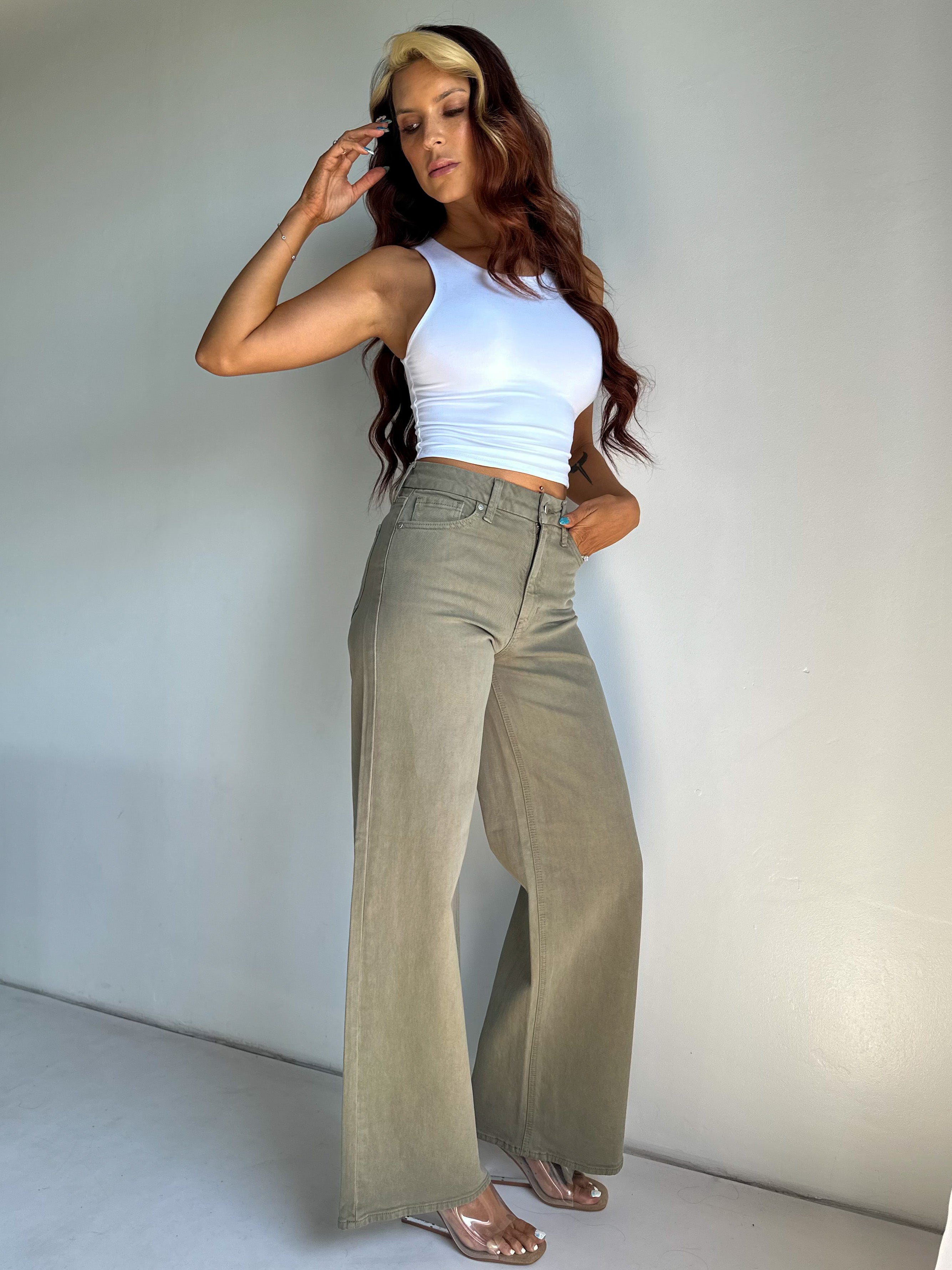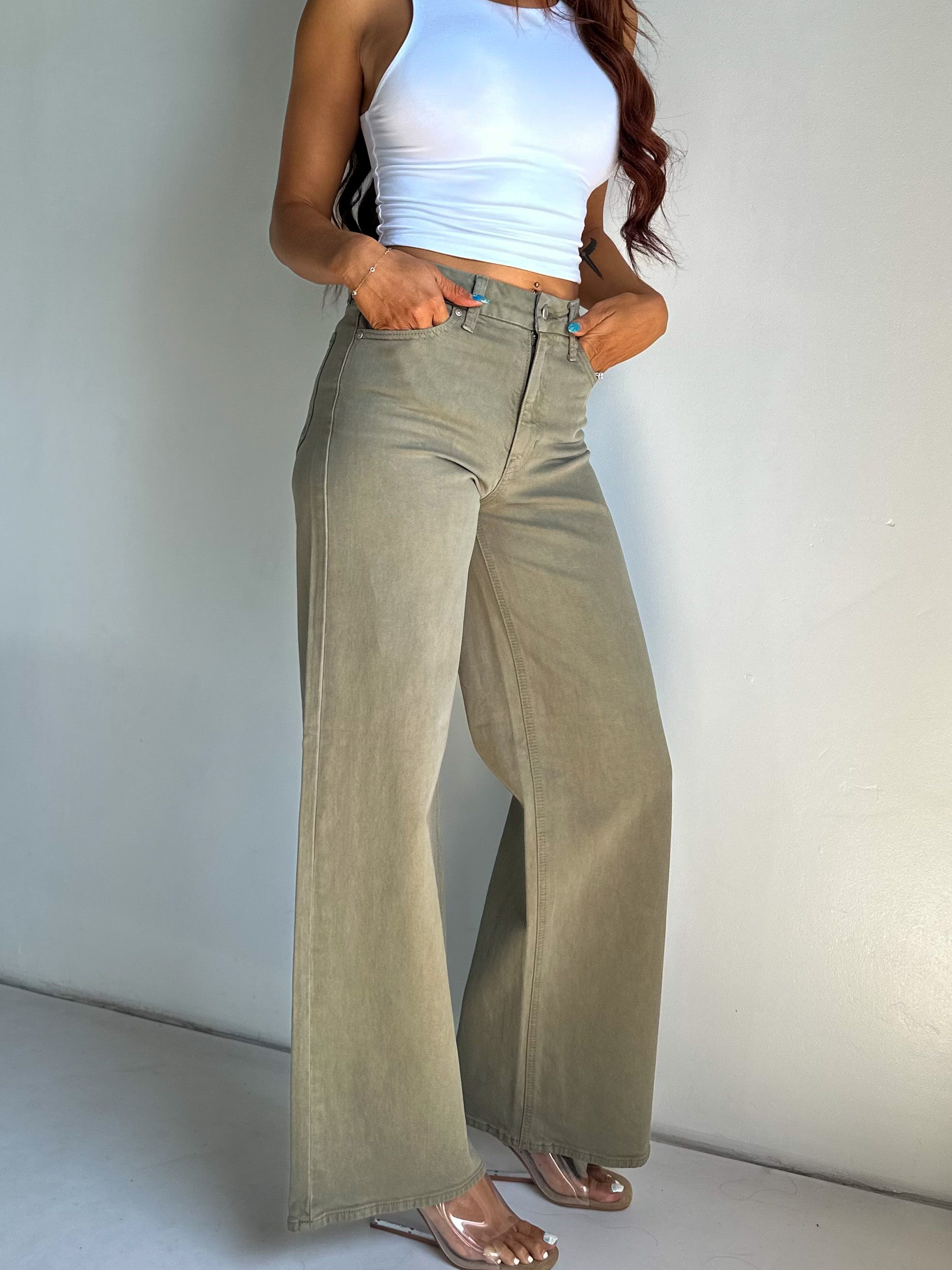 [JBD] Palazzo Wide Leg Jeans - Olive