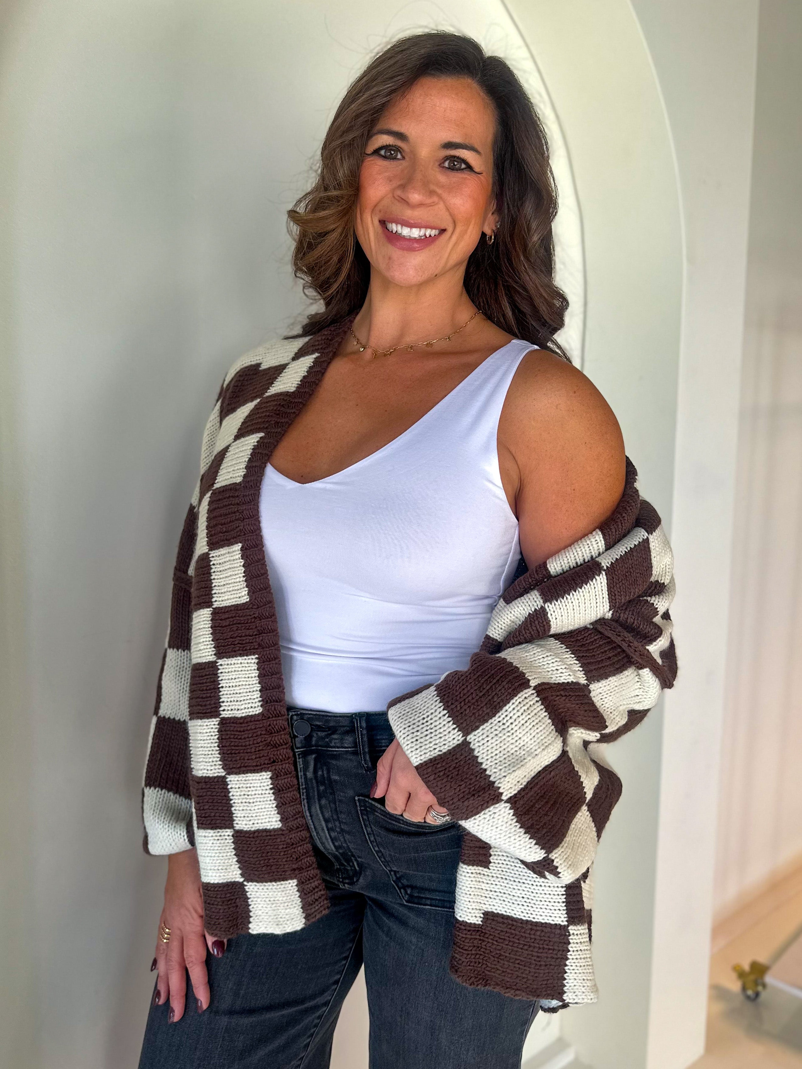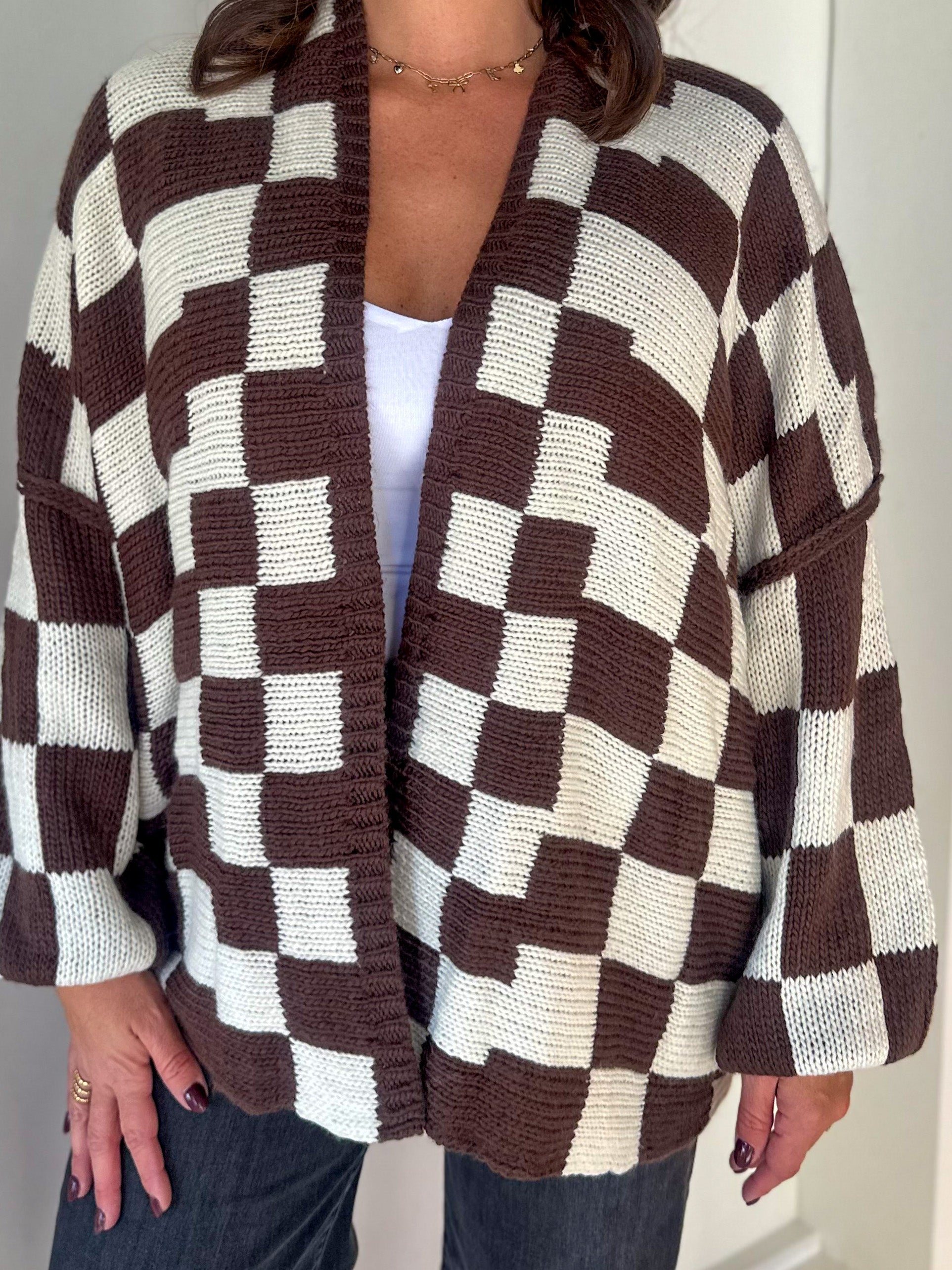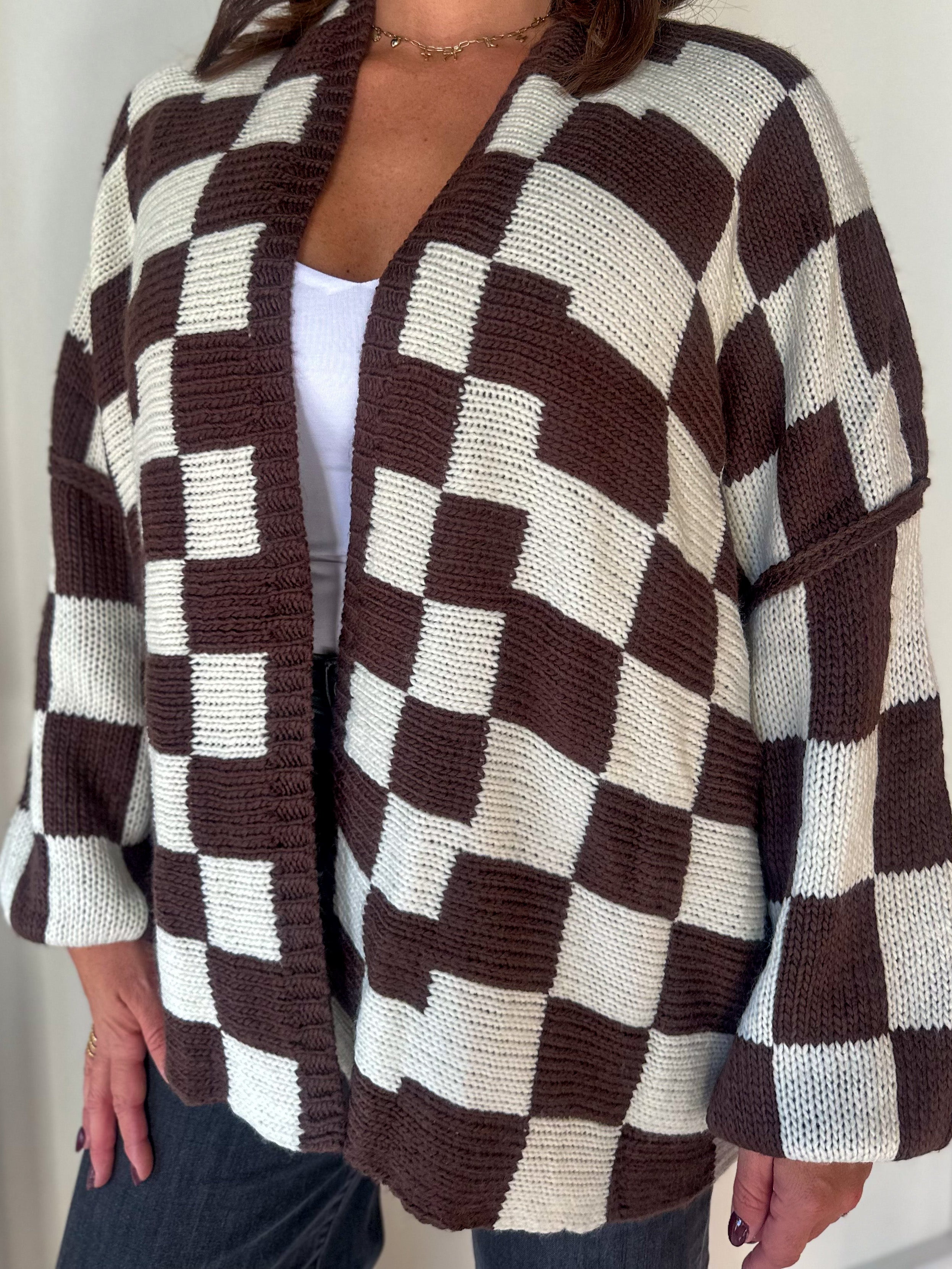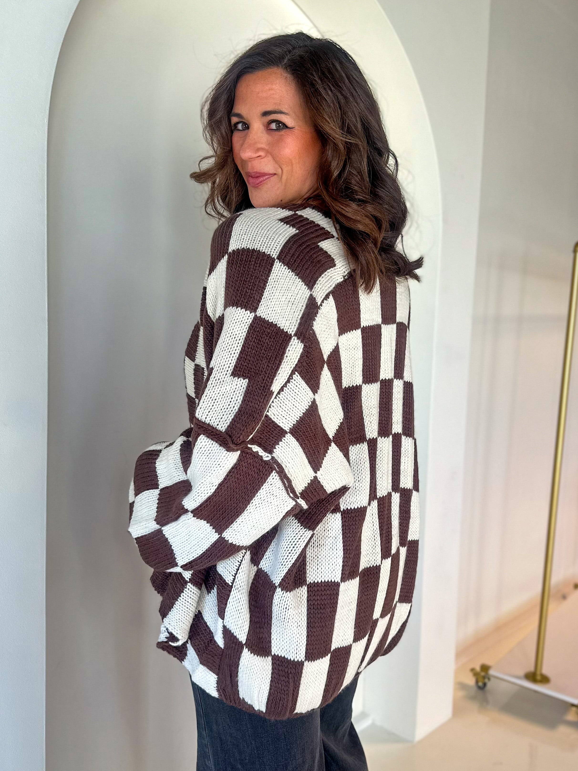 Brown/Ivory Checkered Oversized Cardigan