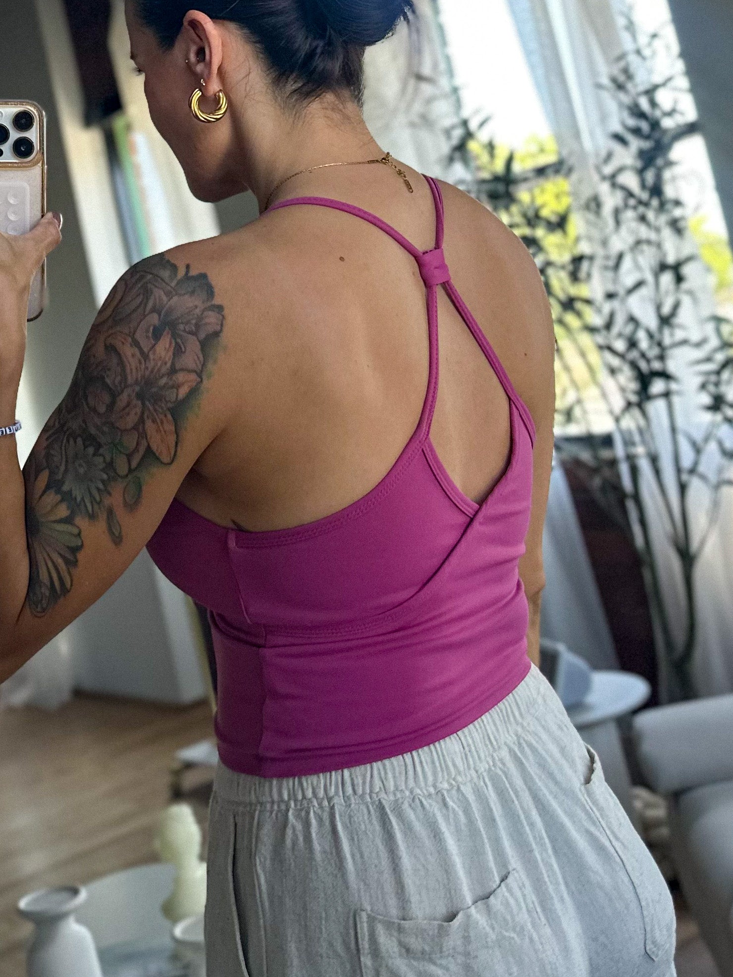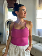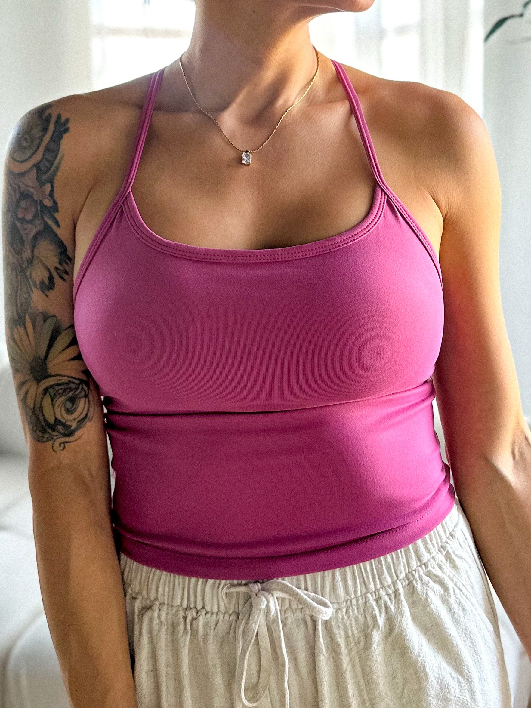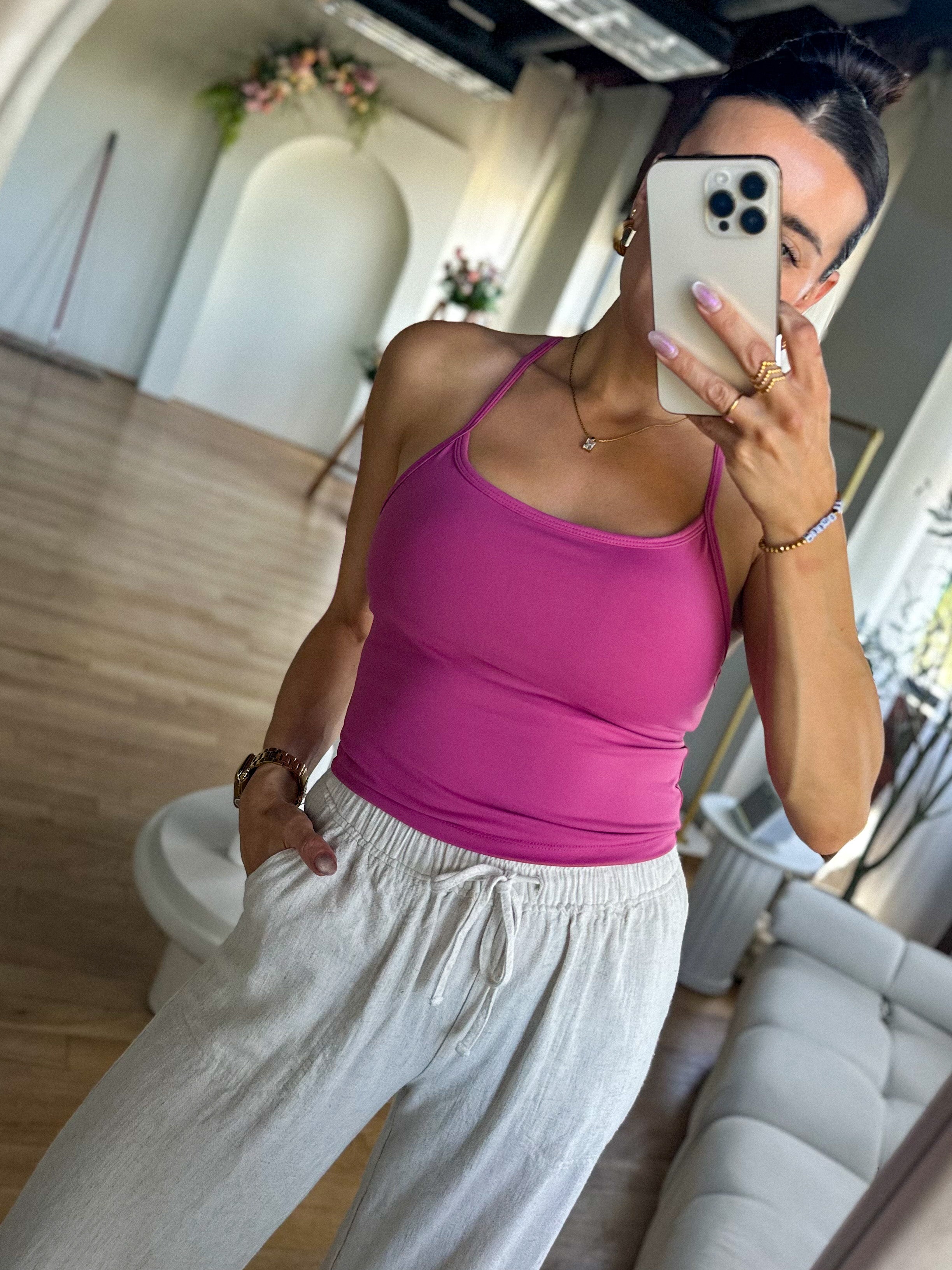 Spaghetti Strap Athleisure Tank - Soft Magenta
