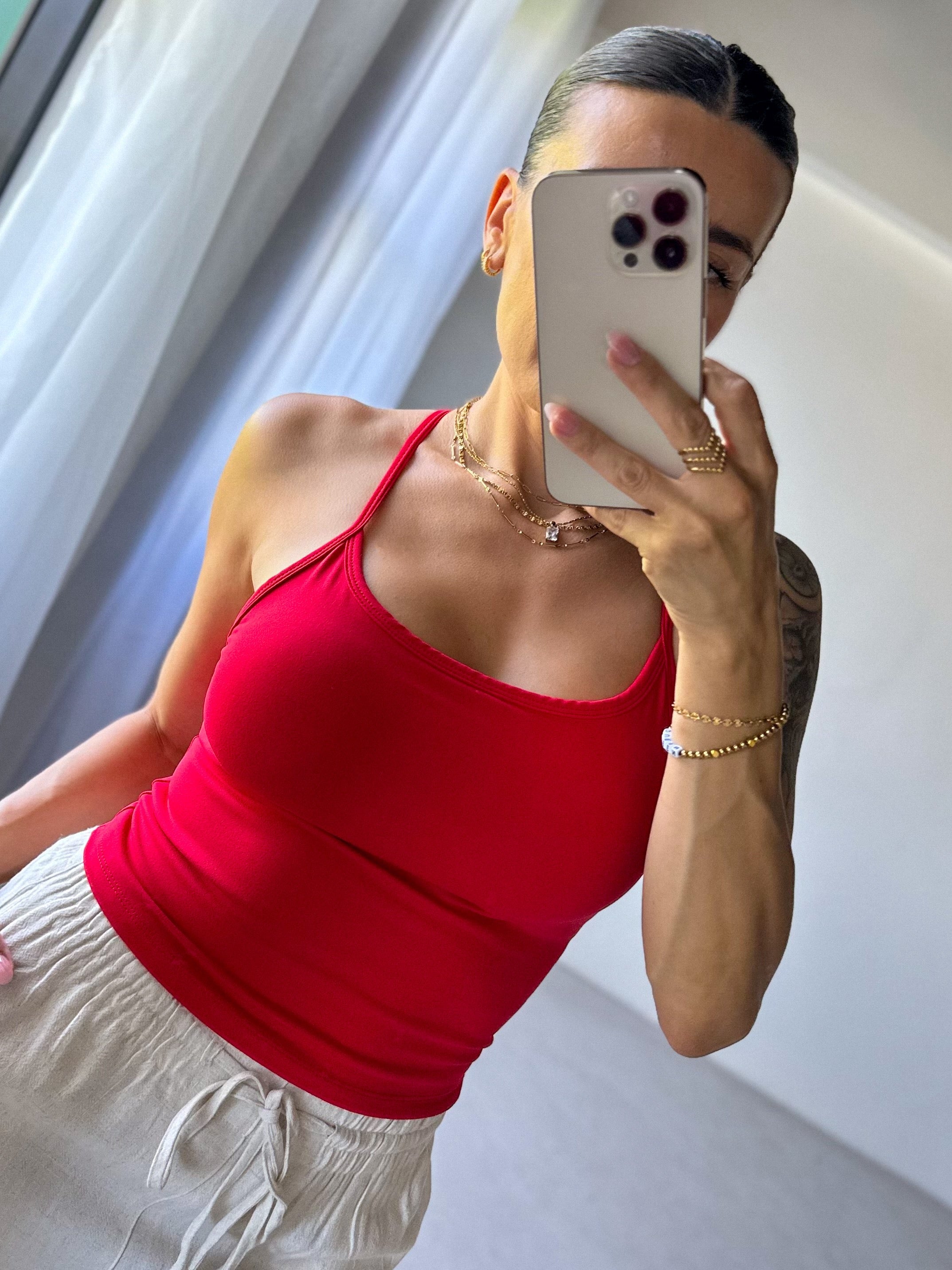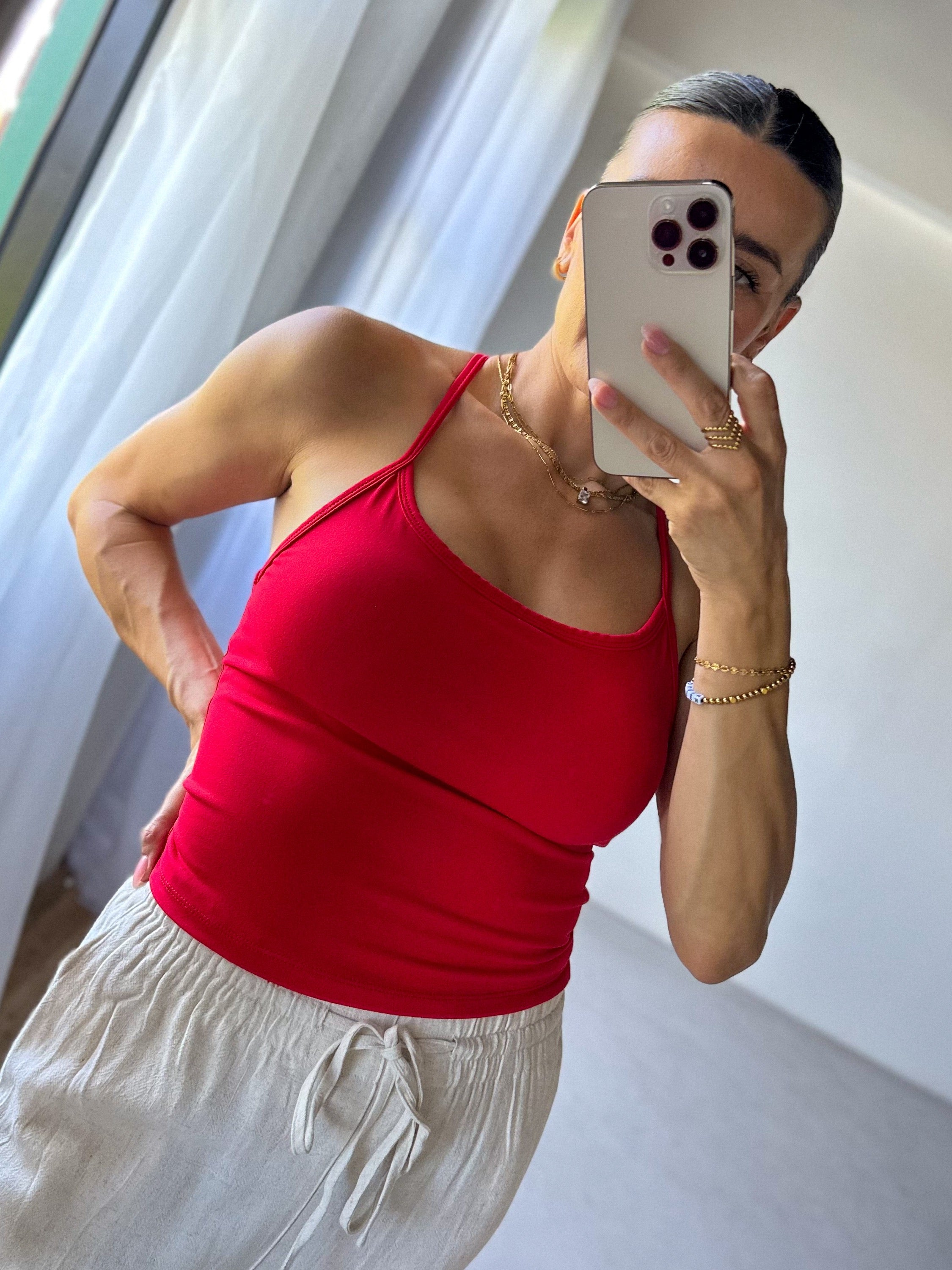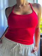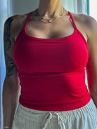 Spaghetti Strap Athleisure Tank - Cherry Red