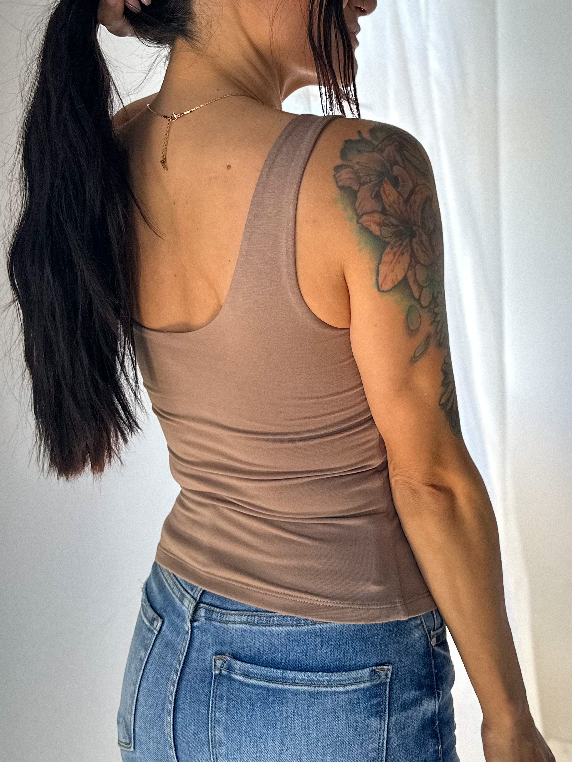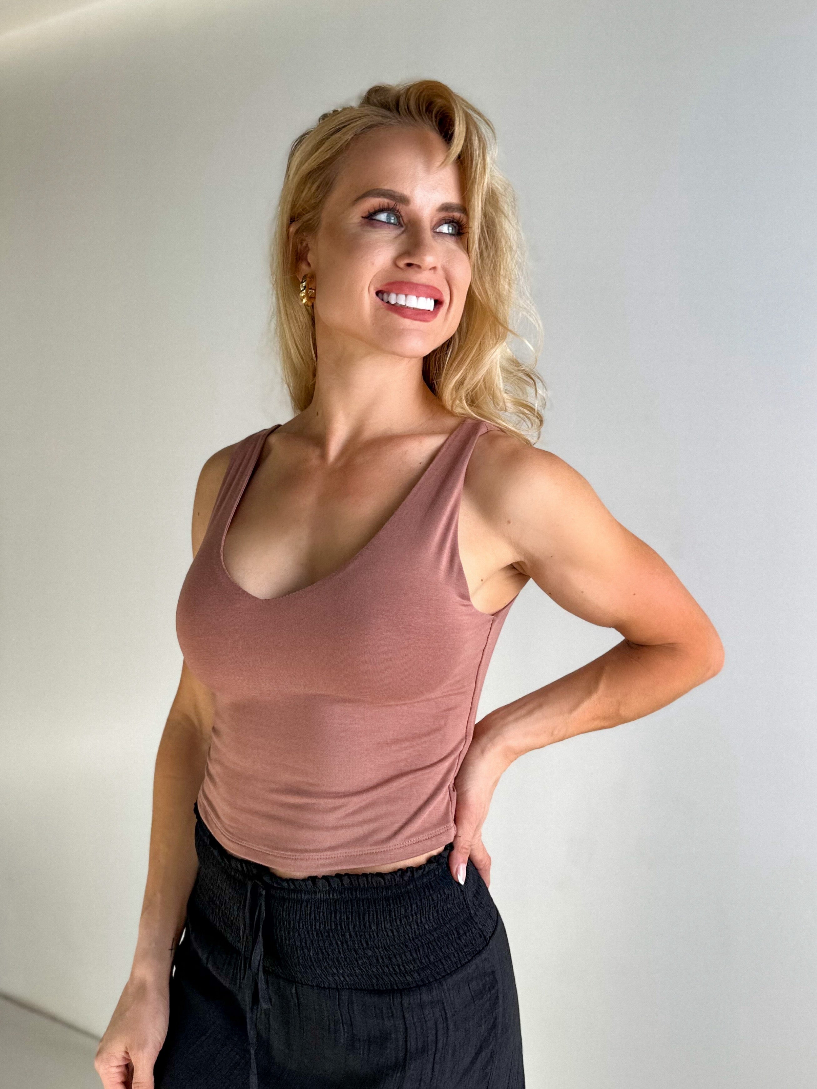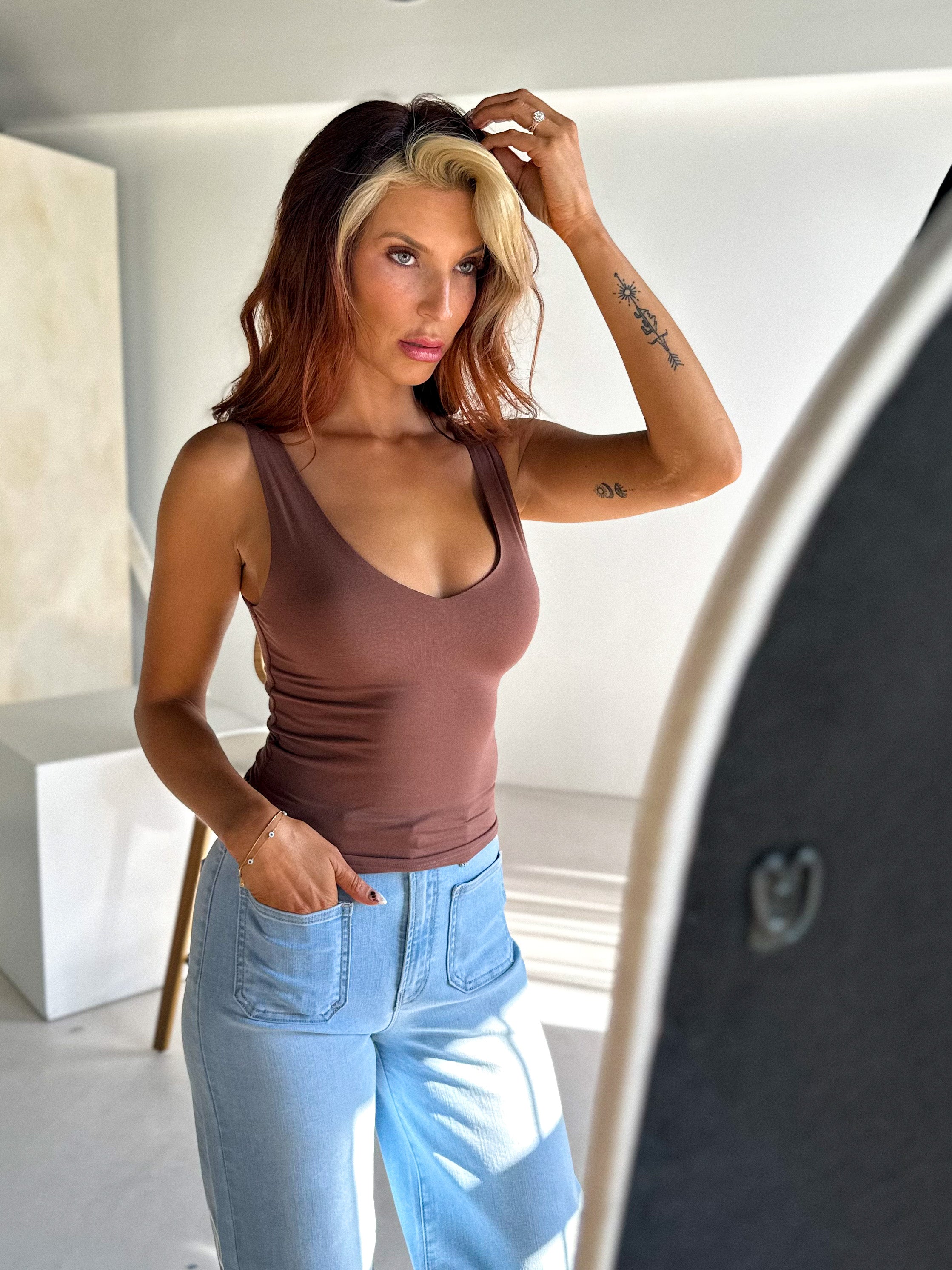'Your New Favorite Tank', V-Neck, CROP - Mocha