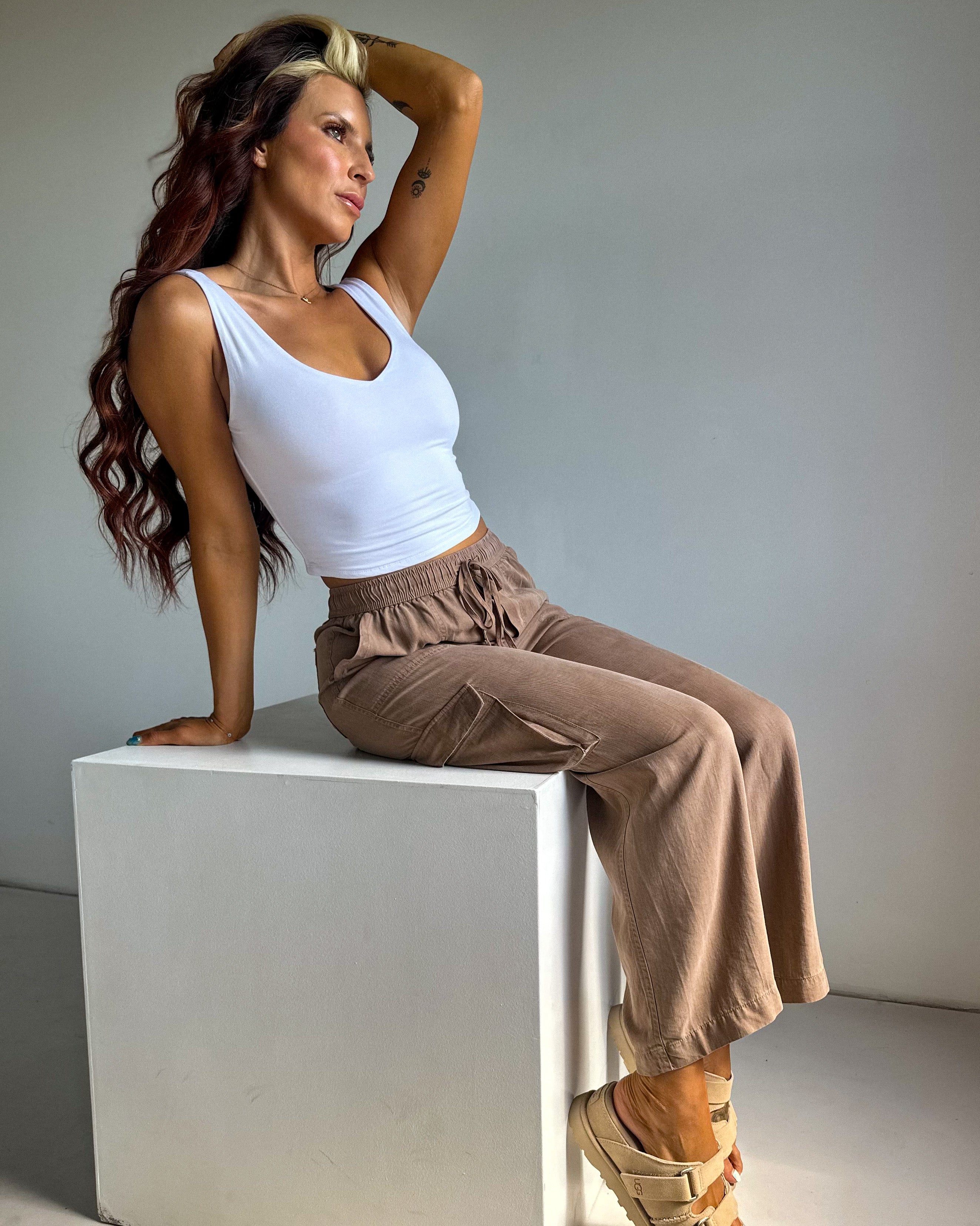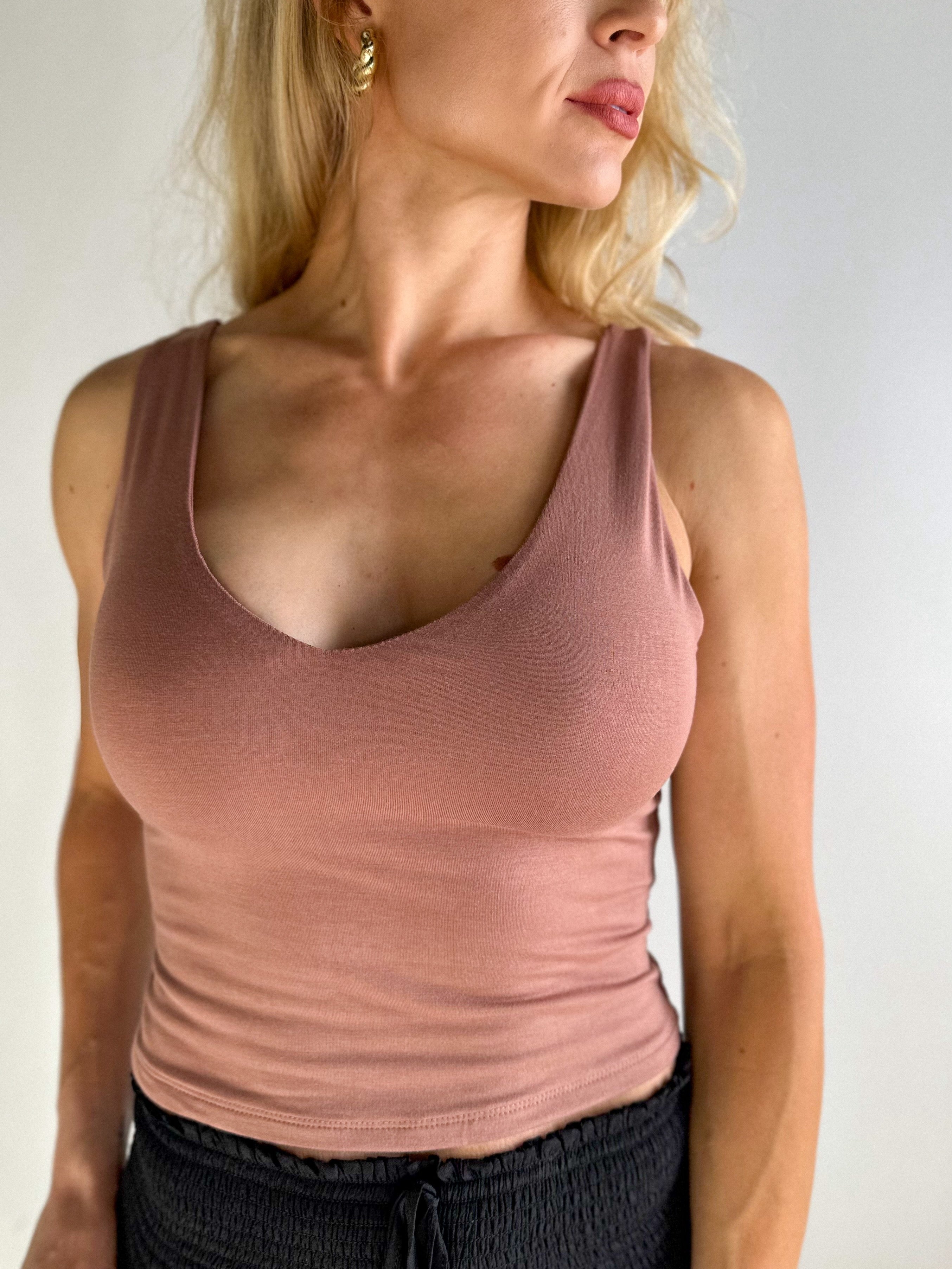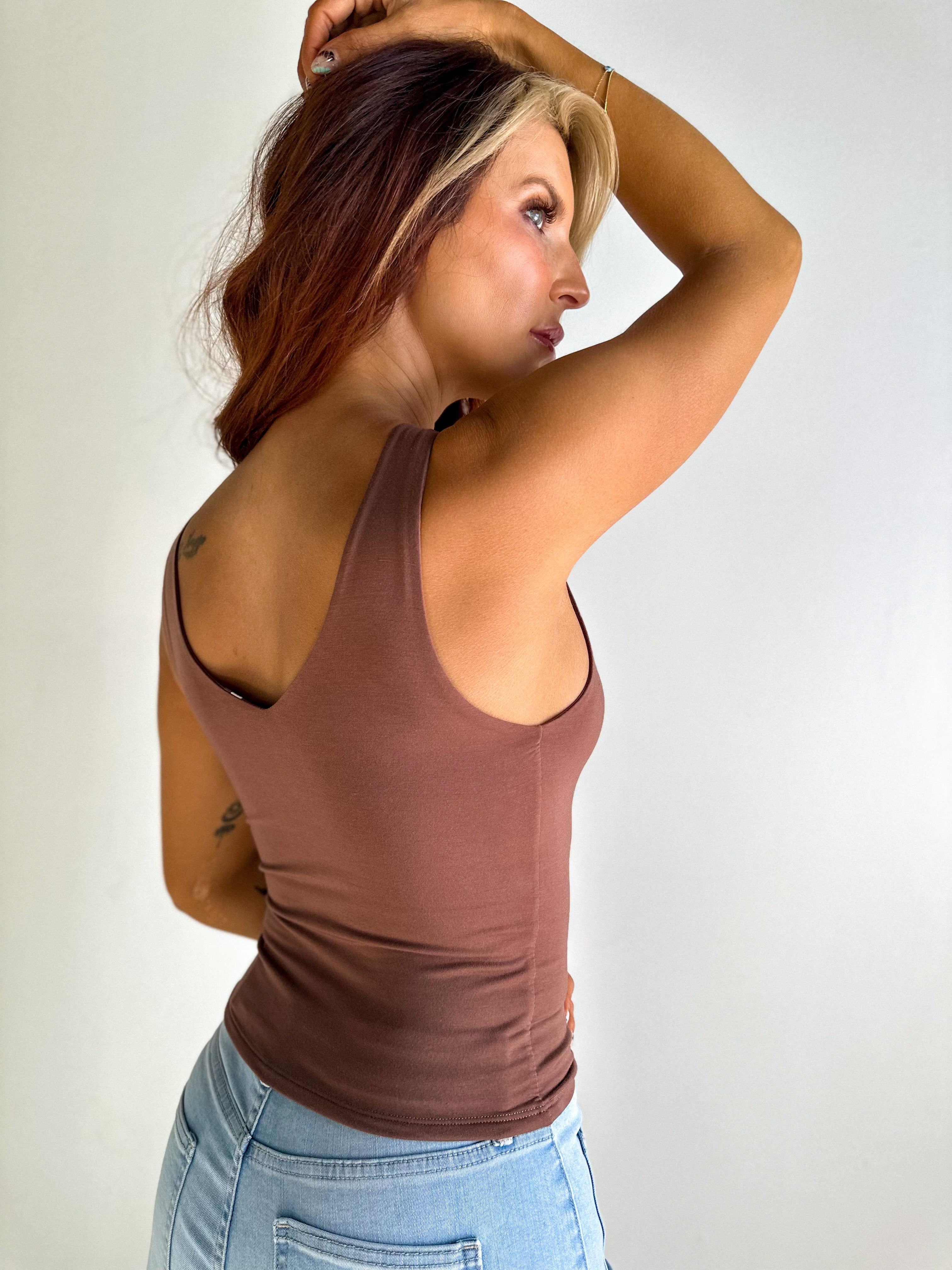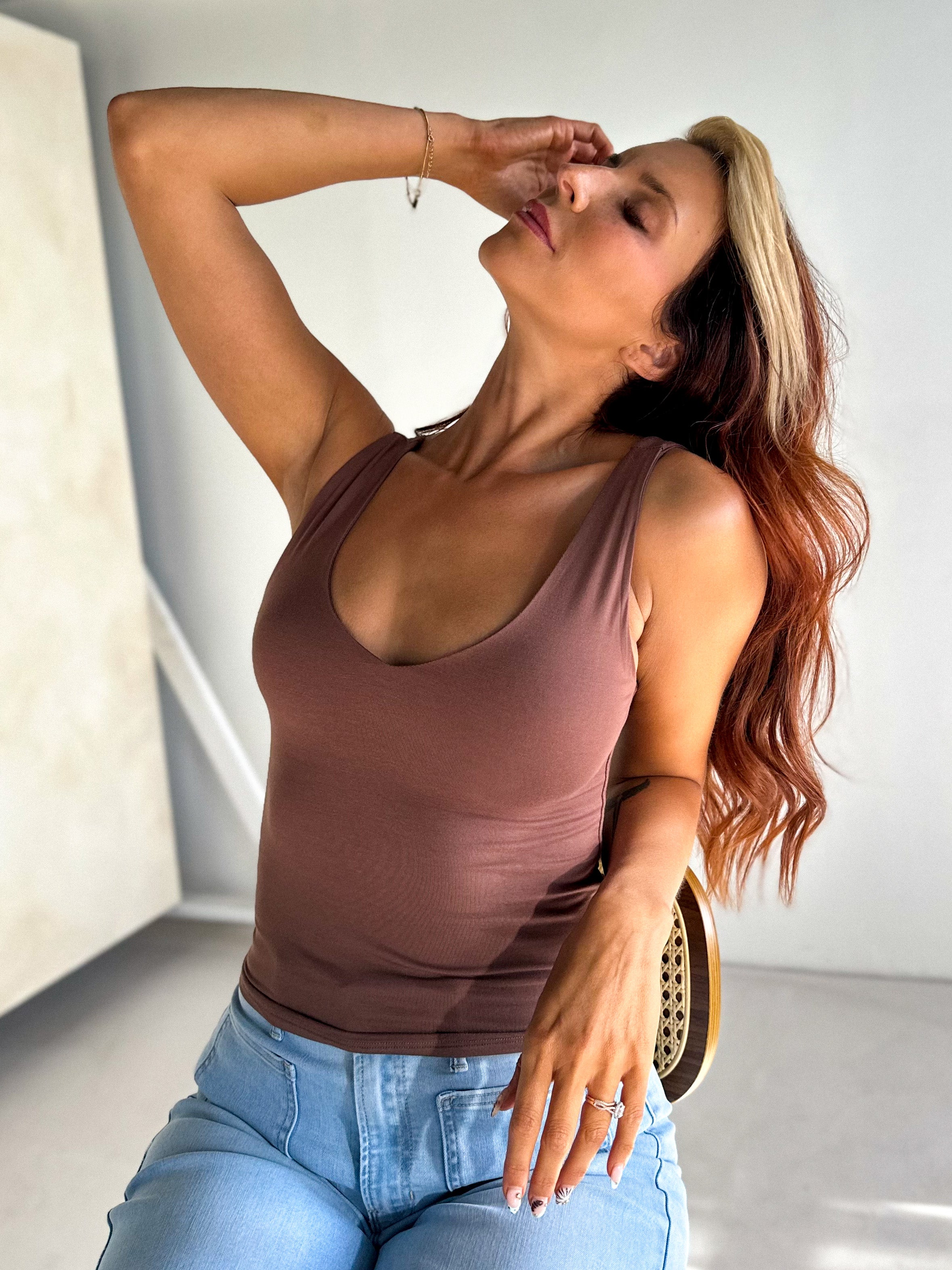 'Your New Favorite Tank', V-Neck, CROP - Mocha