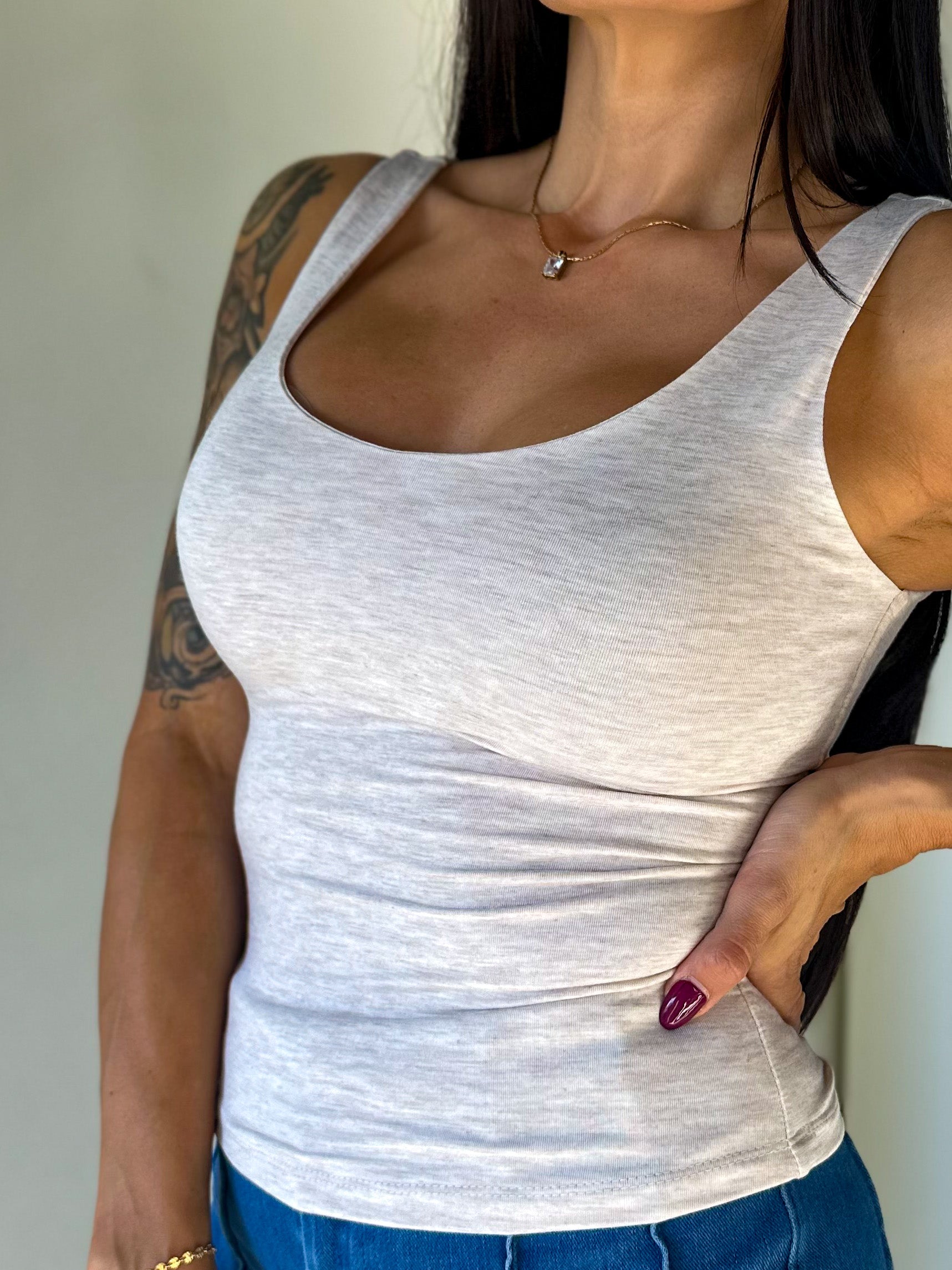 'Your New Favorite Tank', Scoop Neck - Heather Grey