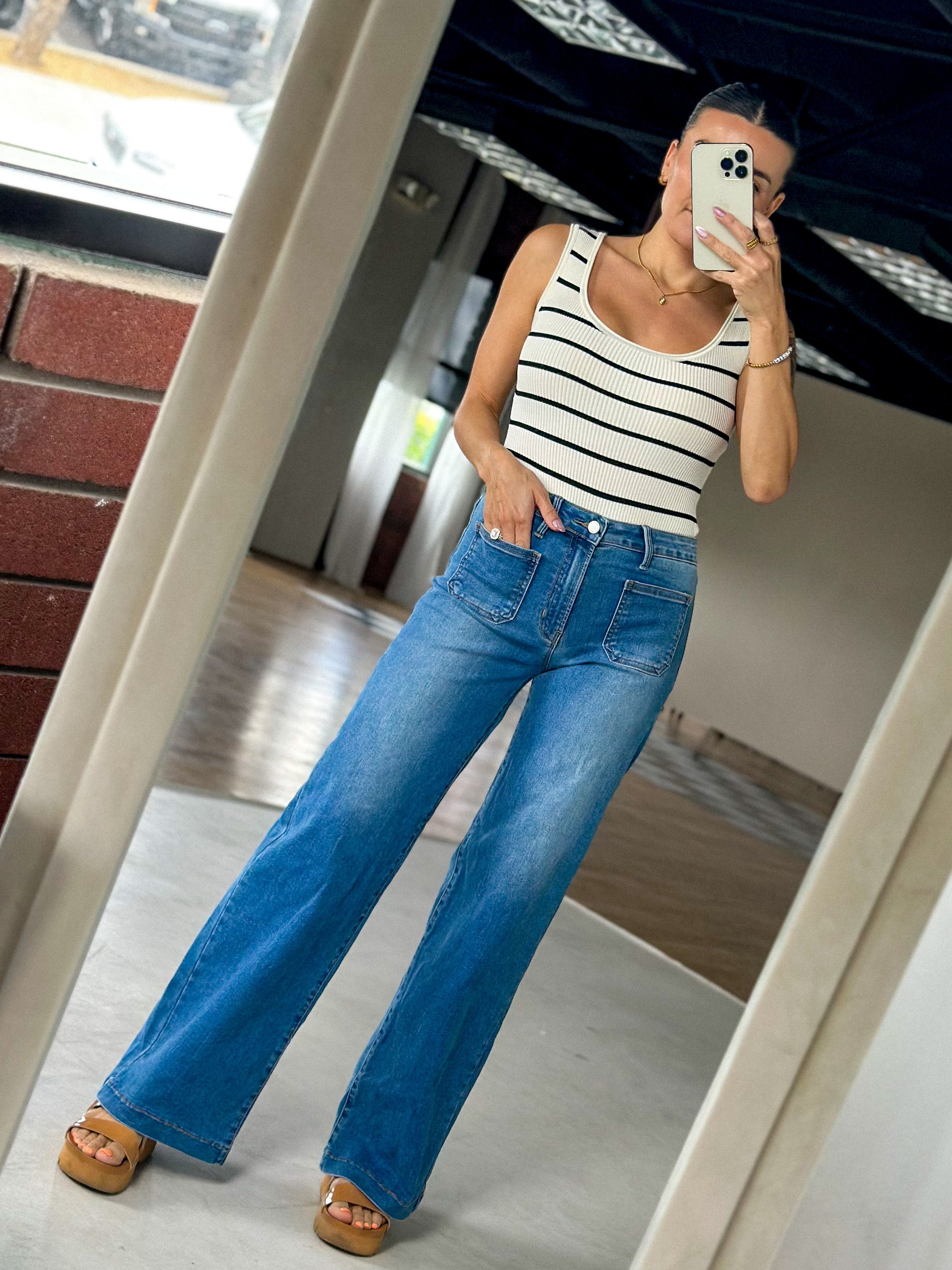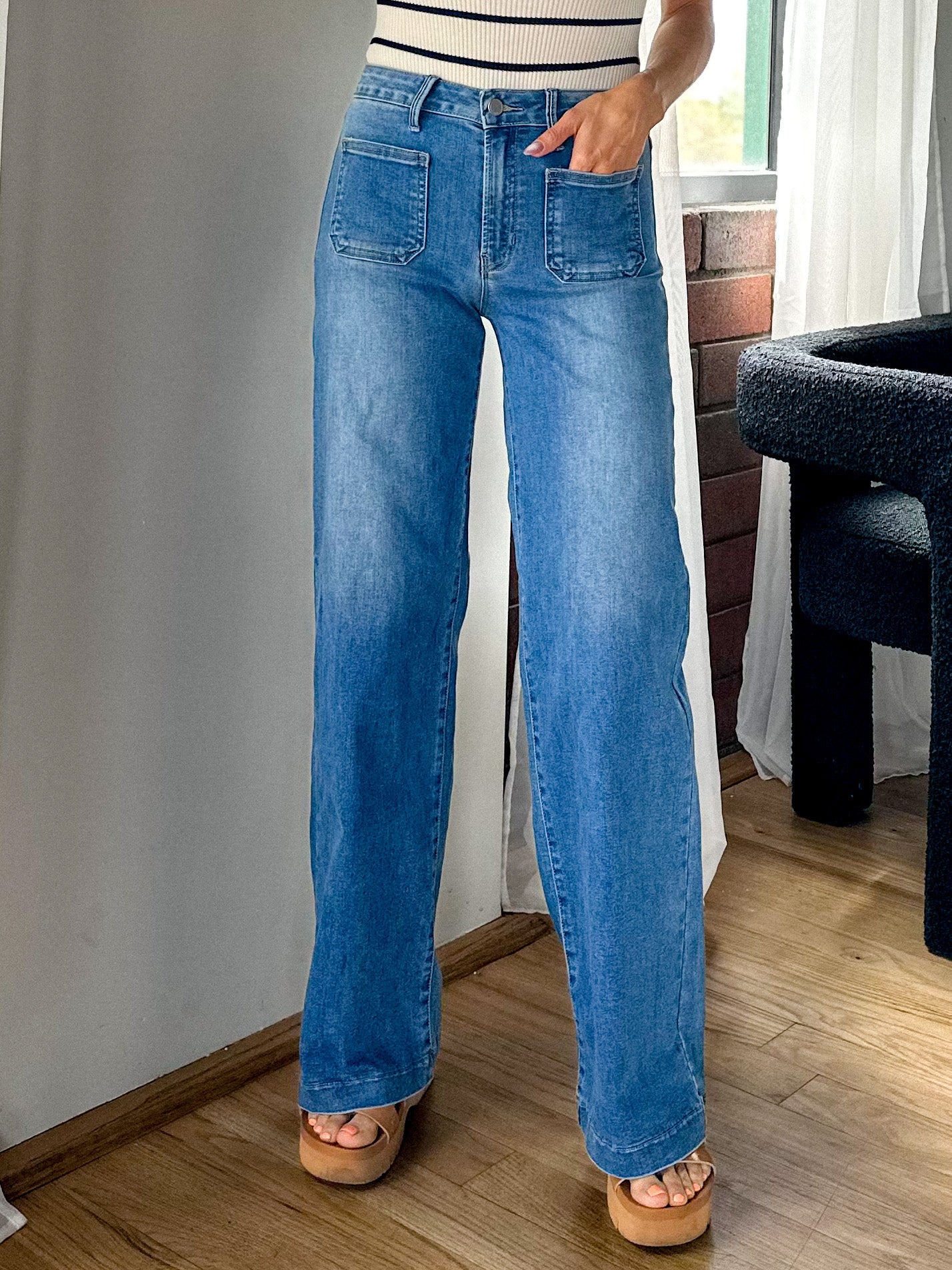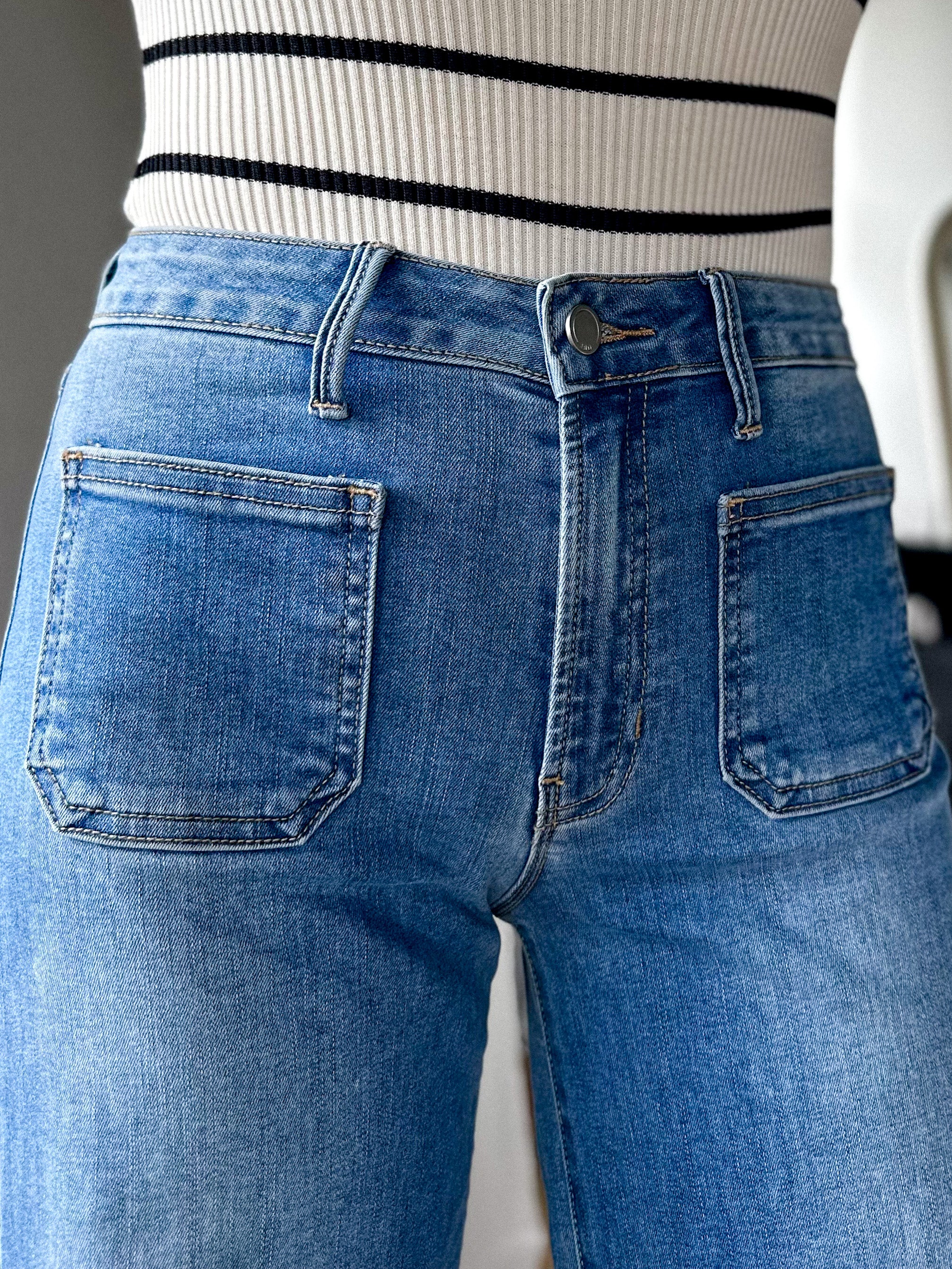 [JBD] Front Pocket Wide Leg Jeans - Medium Wash
