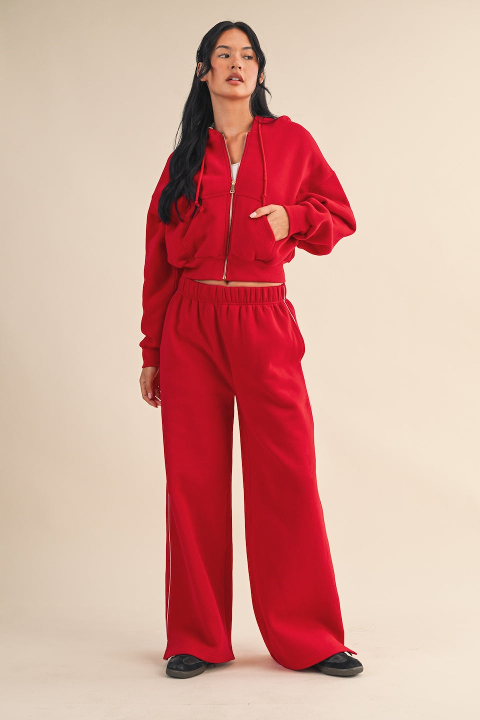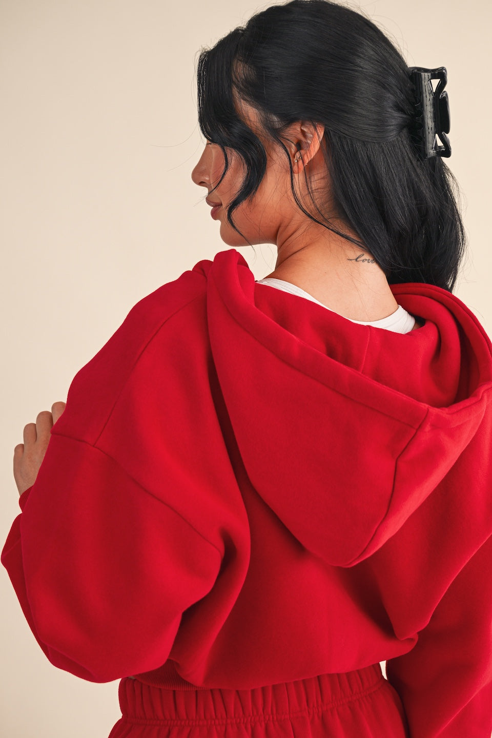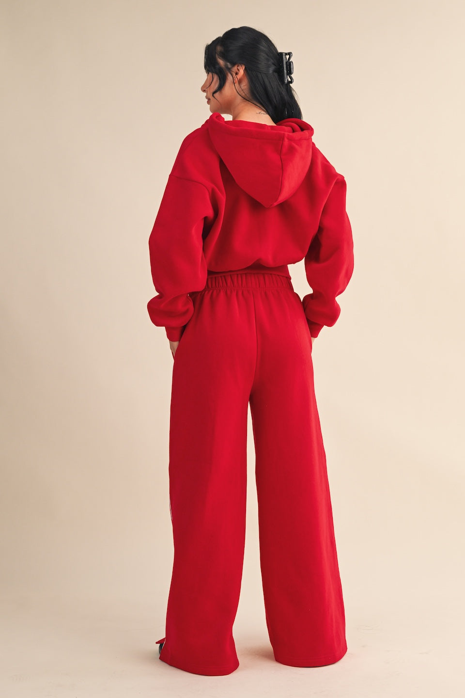 Cozy Fleece Hoodie & Sweats Set - Cherry