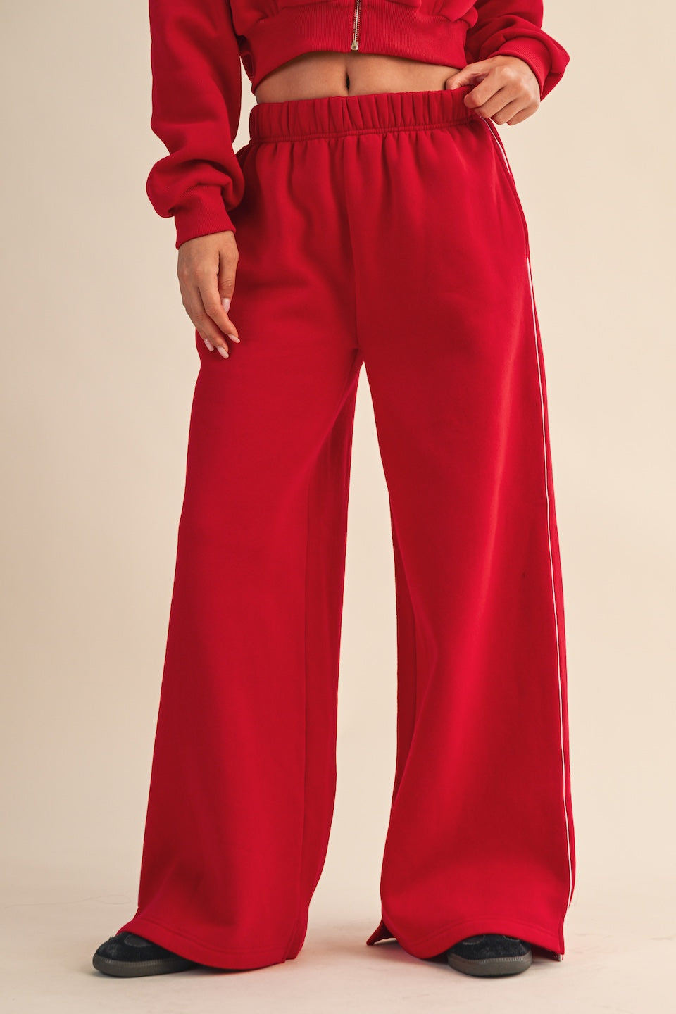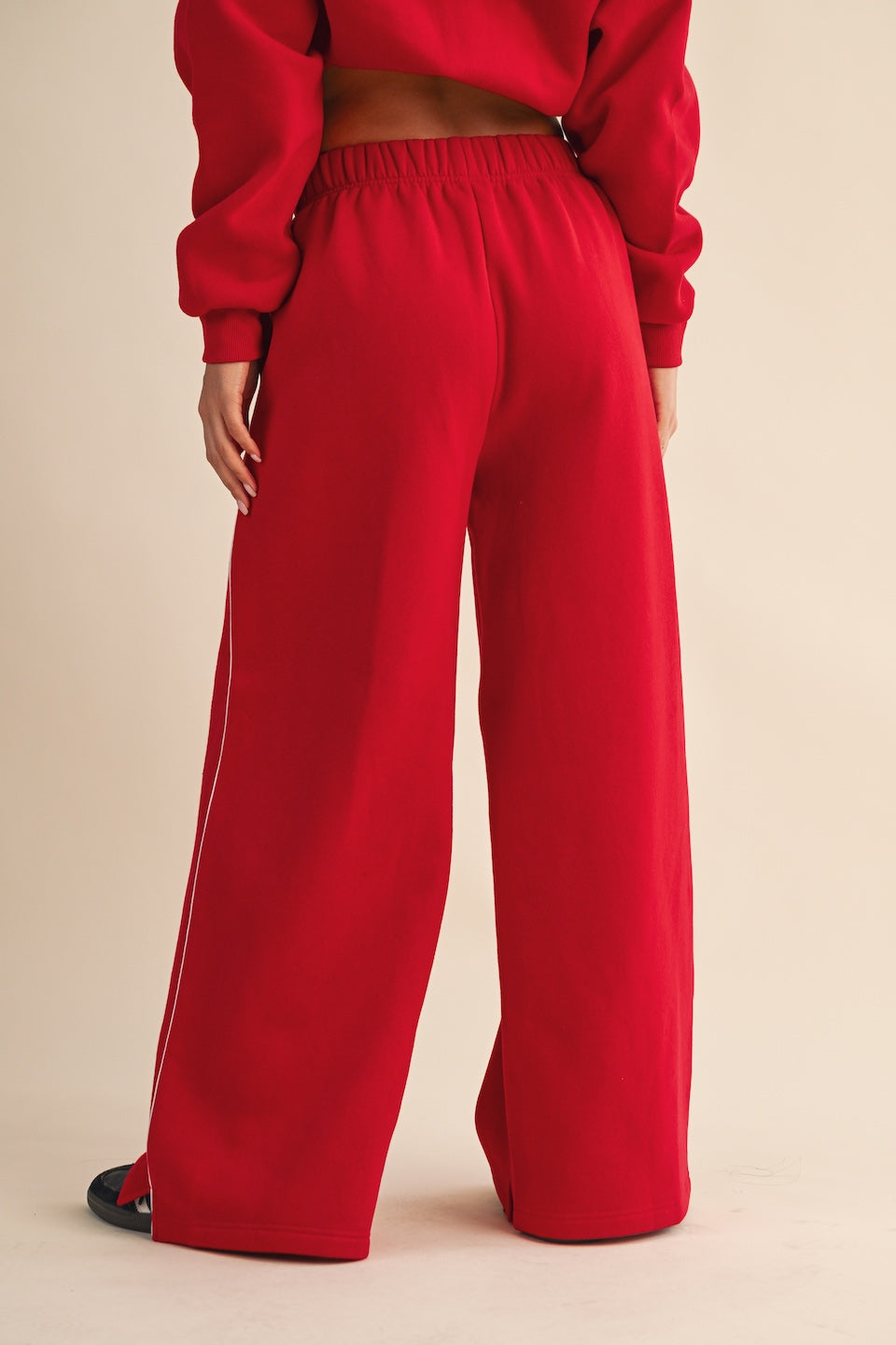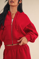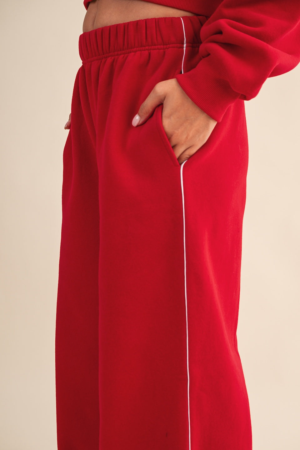 Cozy Fleece Hoodie & Sweats Set - Cherry