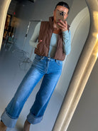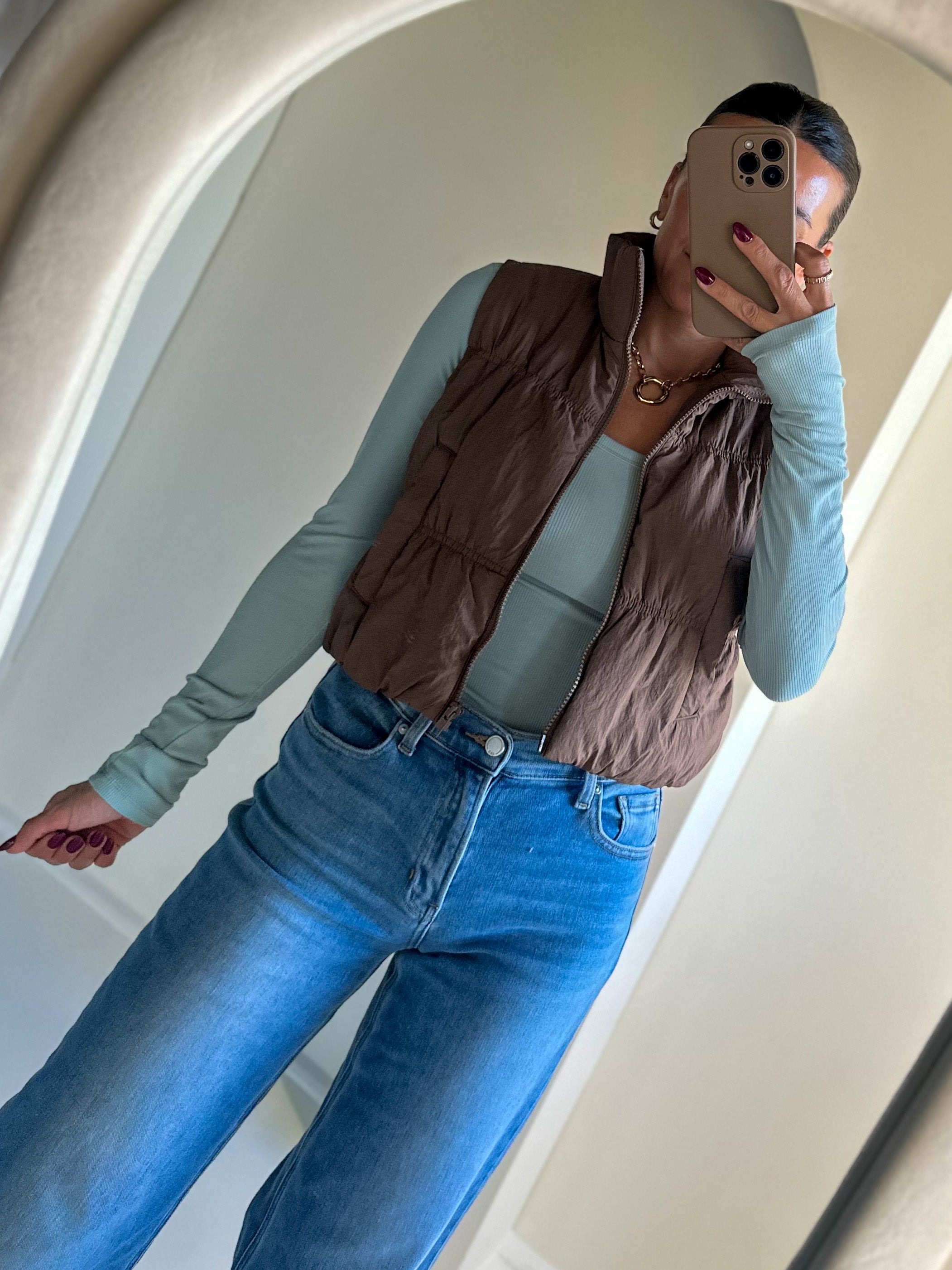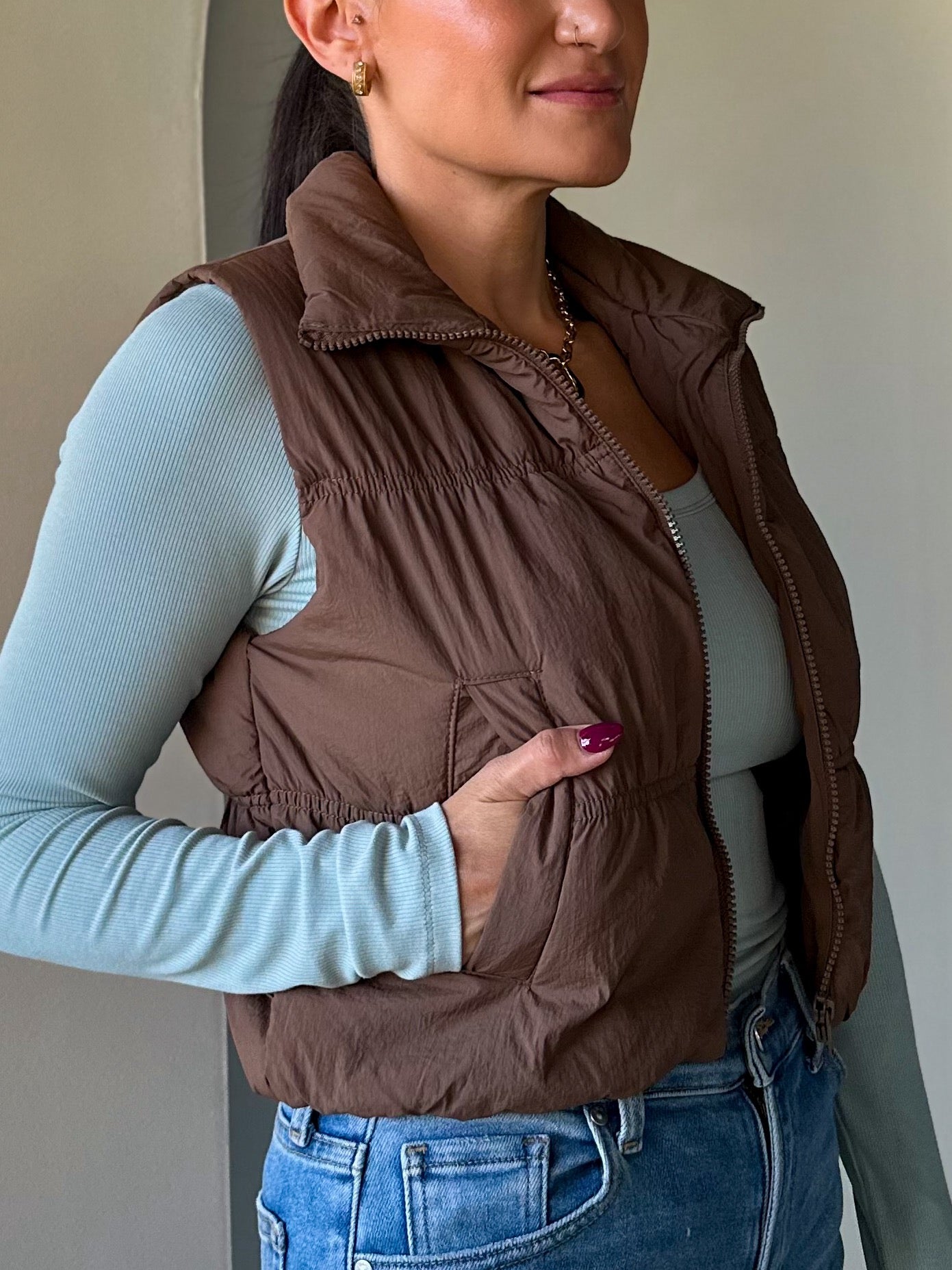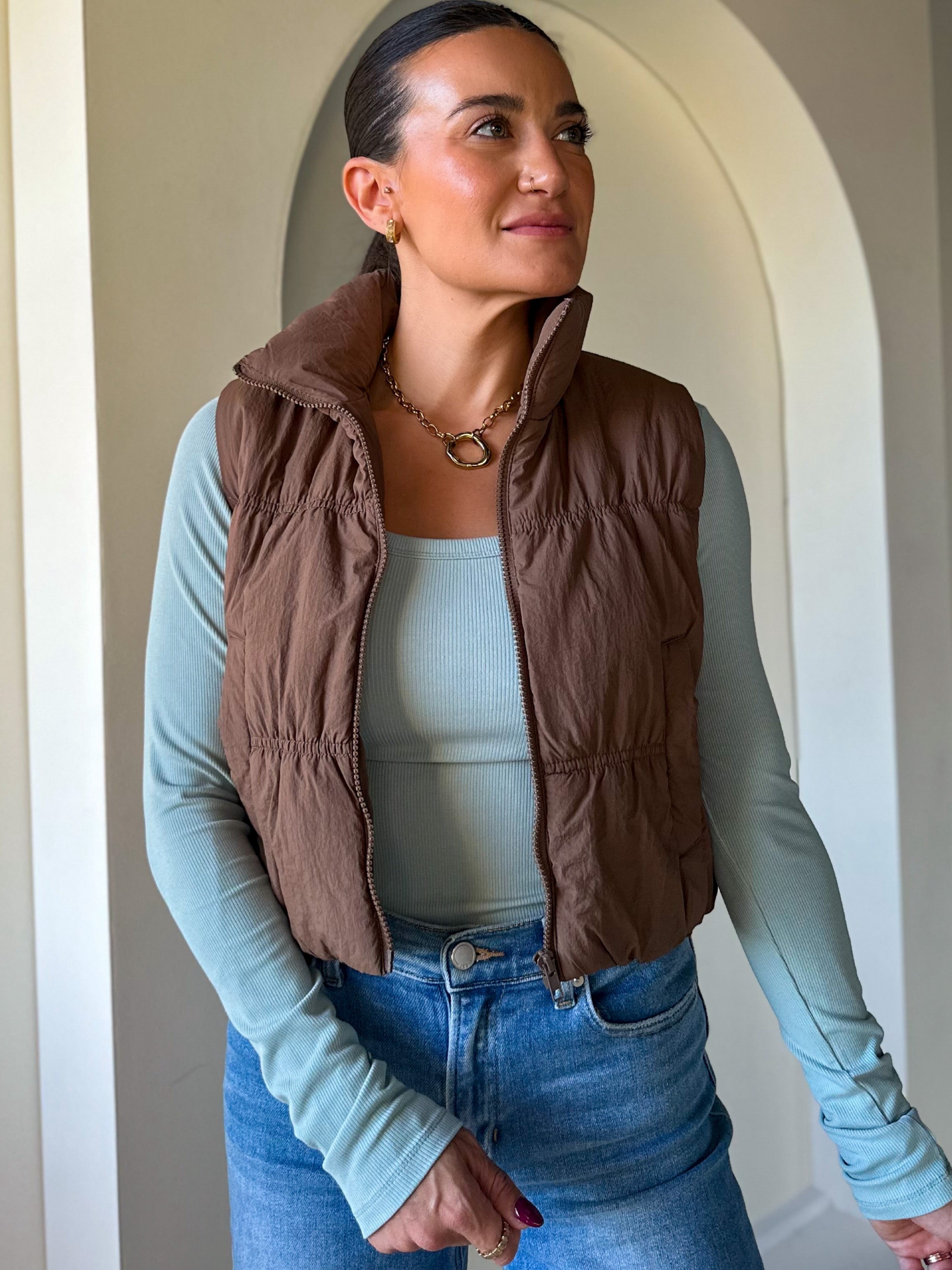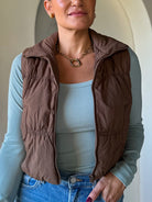 Cropped Puffer Vest - Mocha