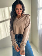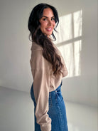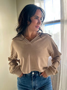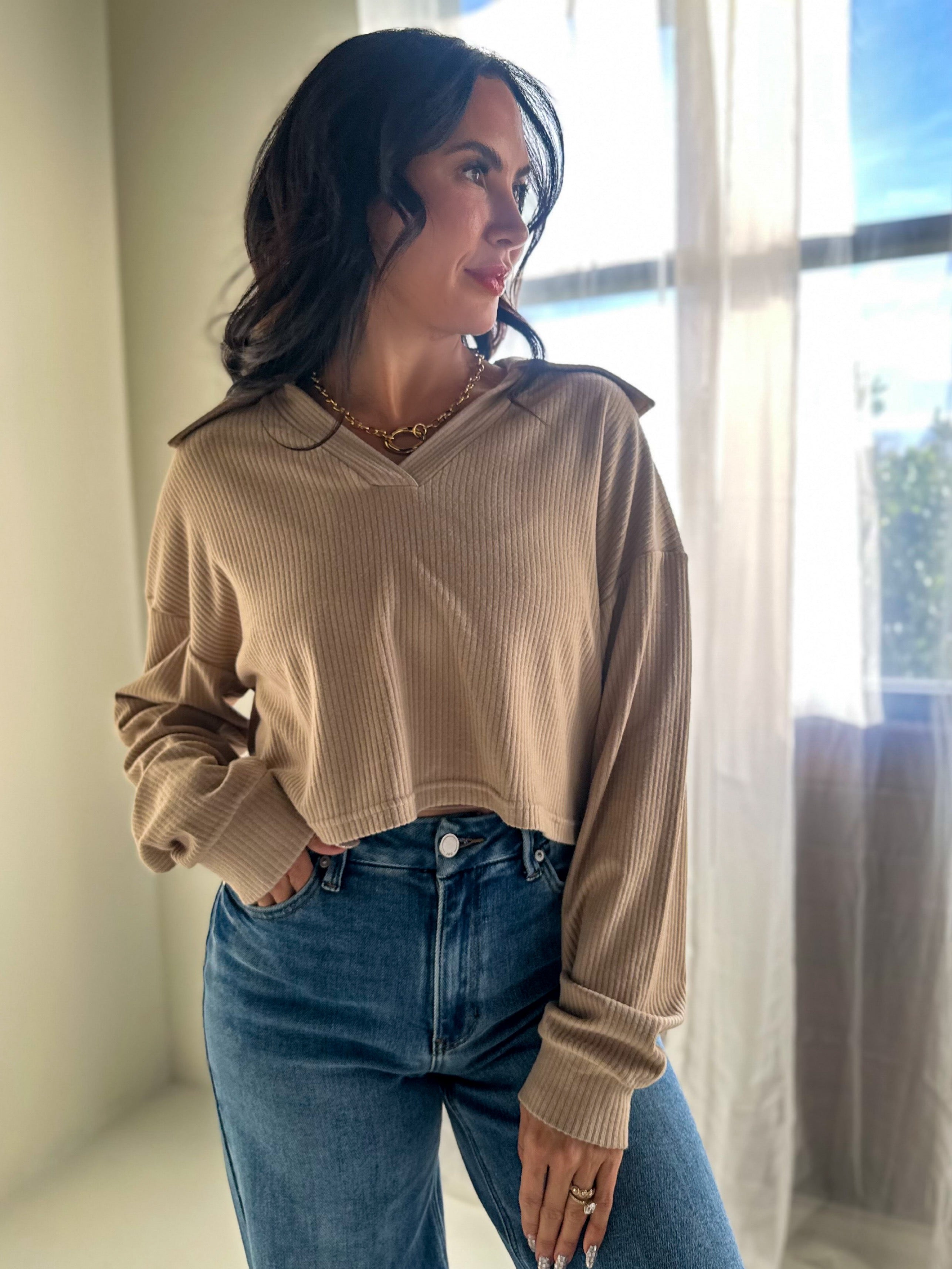 Soft Brushed Ribbed Collared Long Sleeve - Taupe