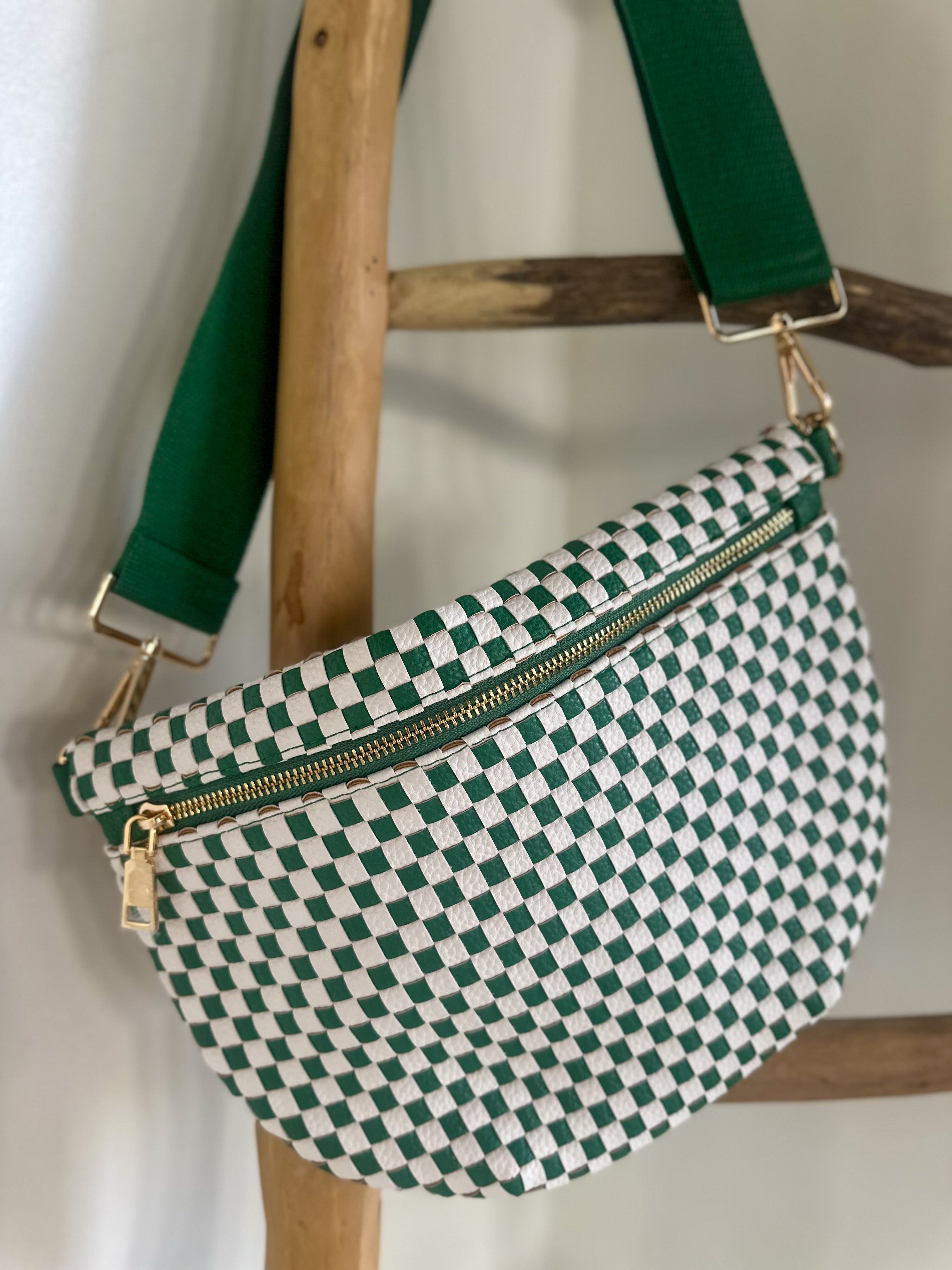 Woven Westlyn Crossbody Bag -Checkered Emerald