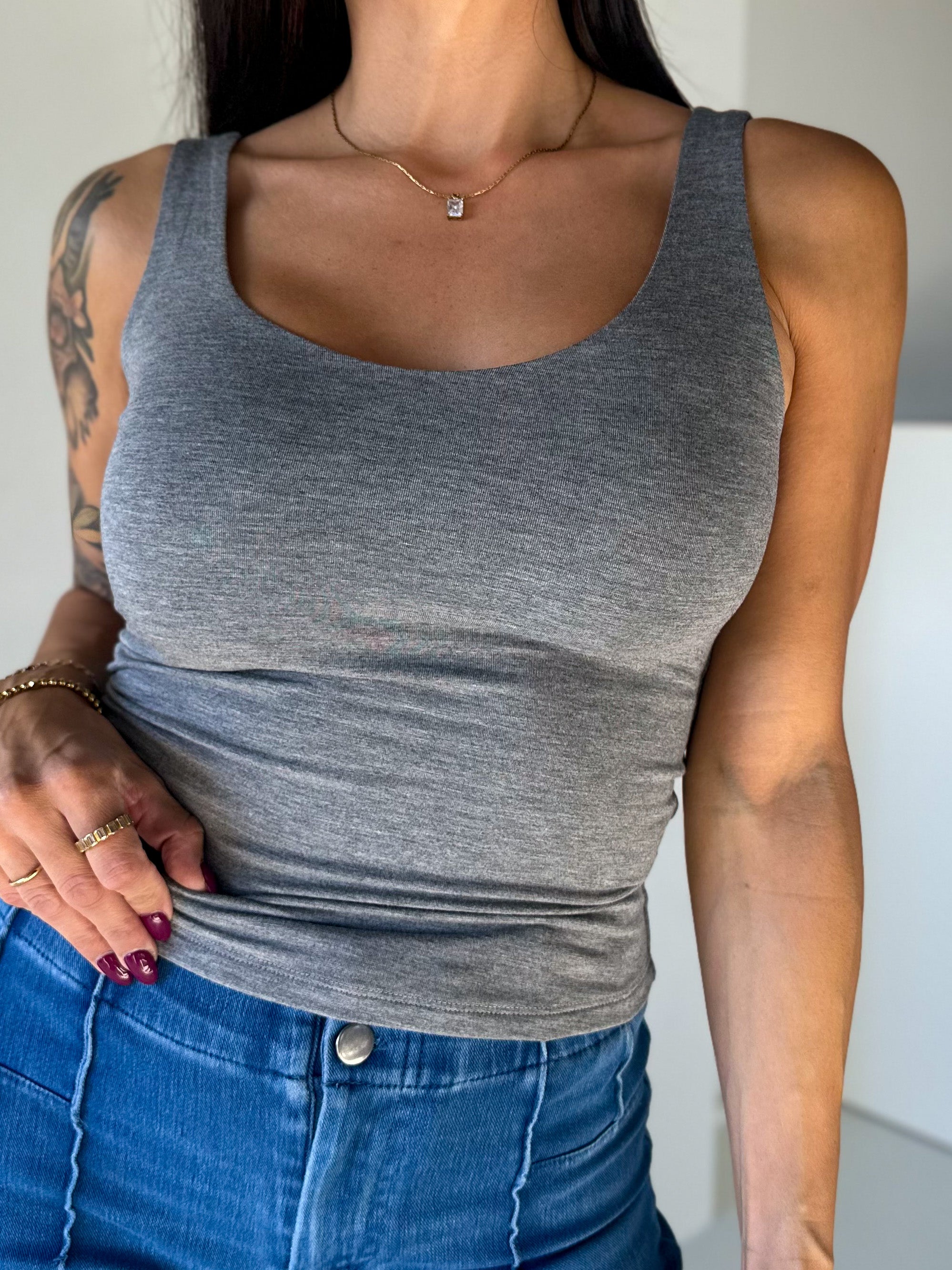 'Your New Favorite Tank', Scoop Neck - Heather Grey