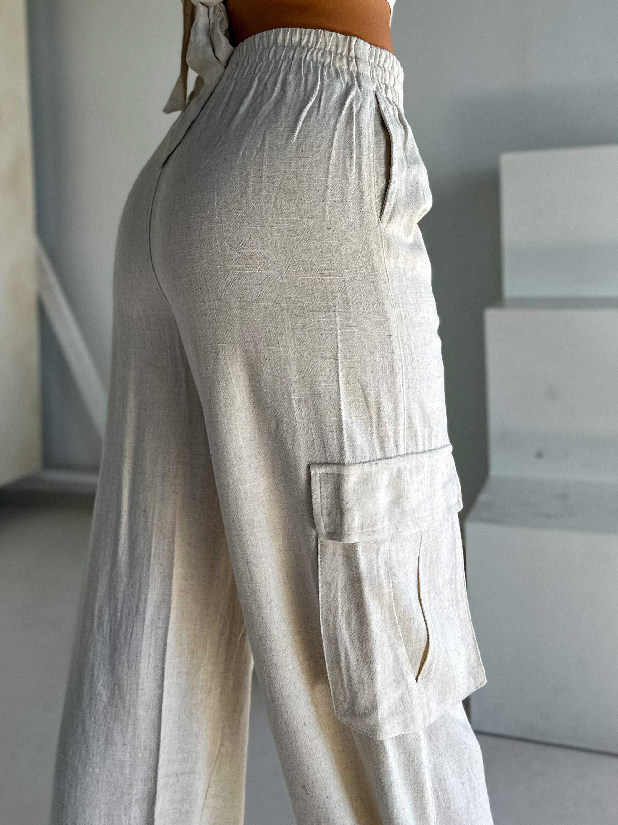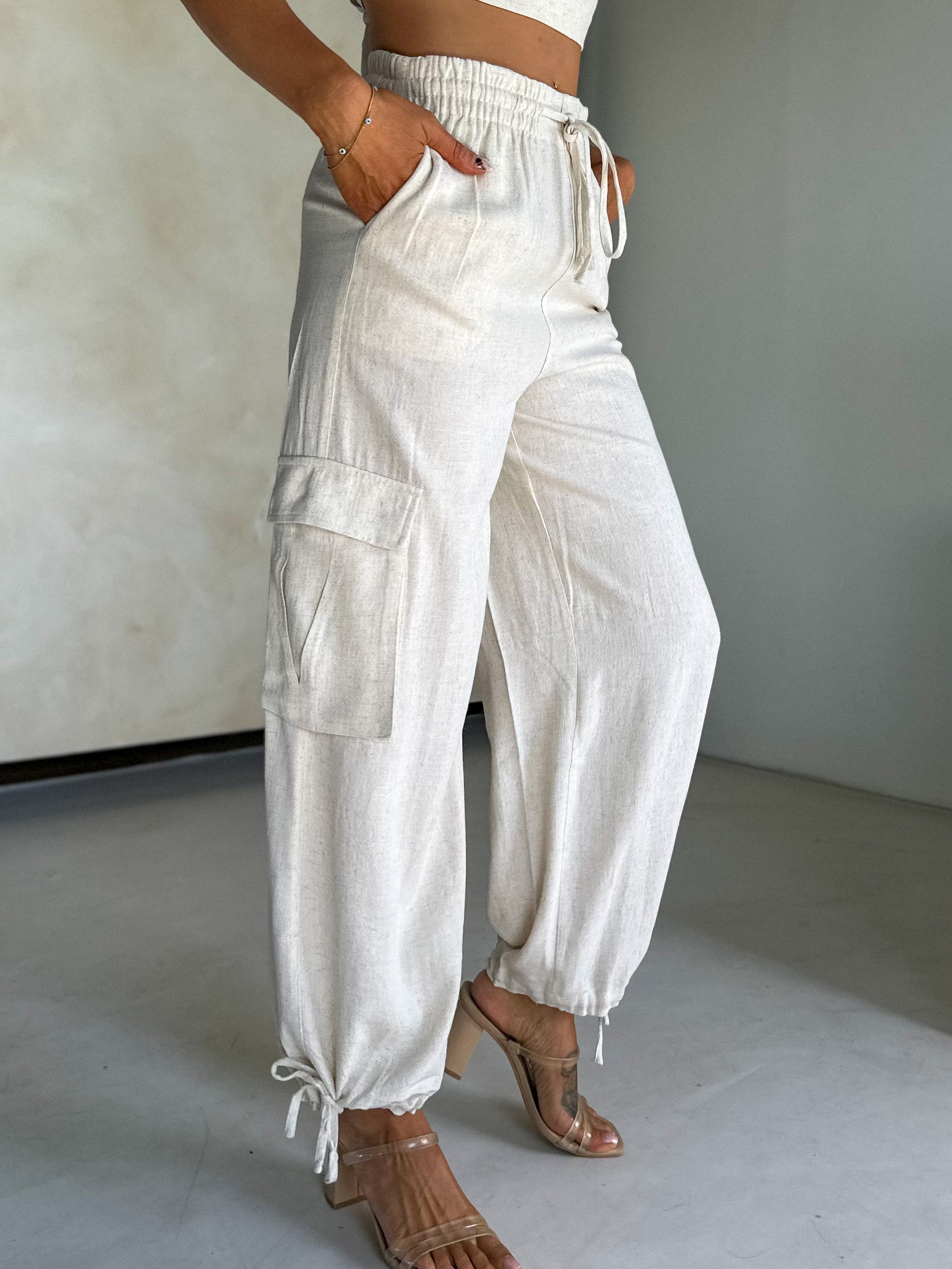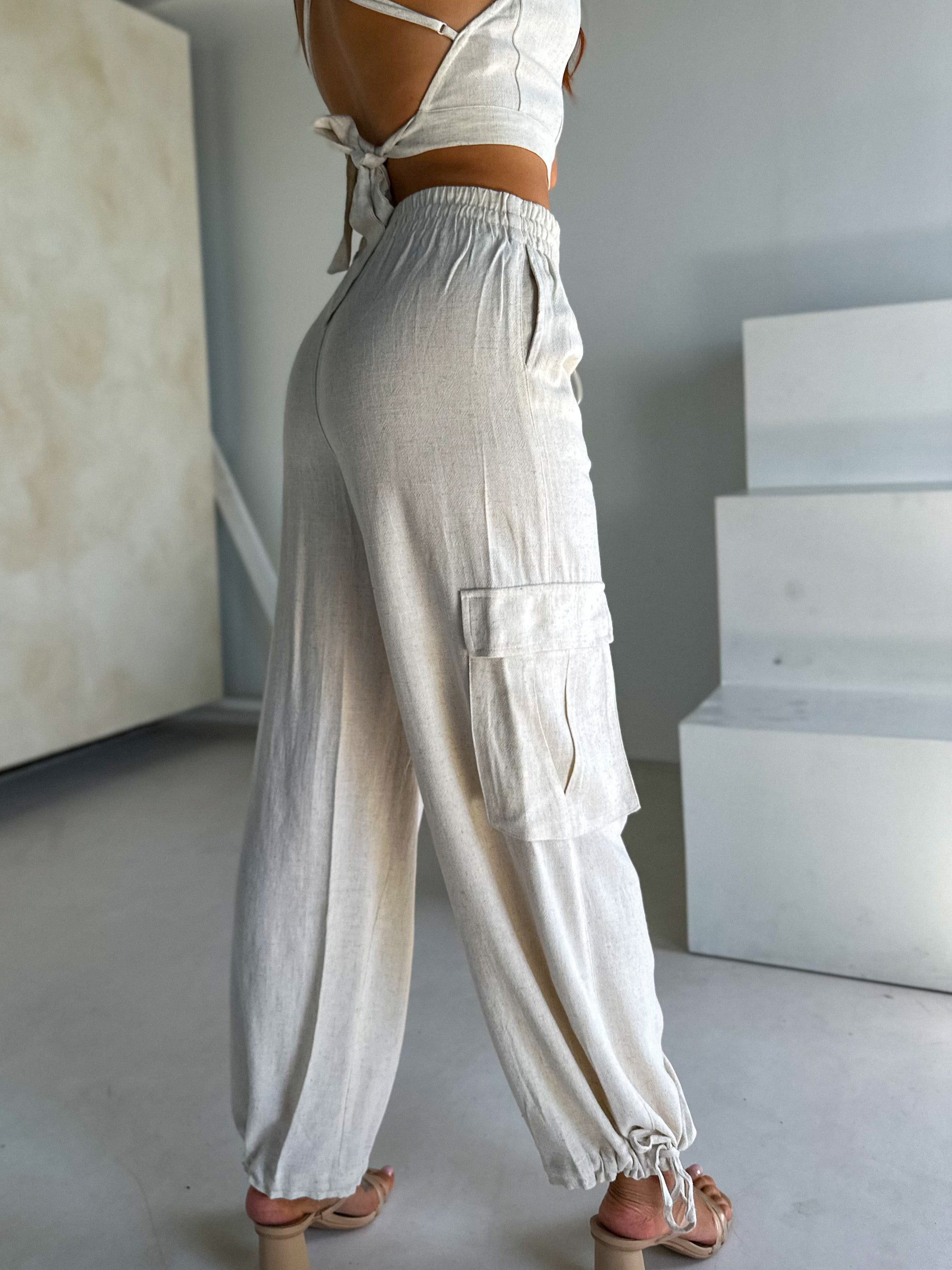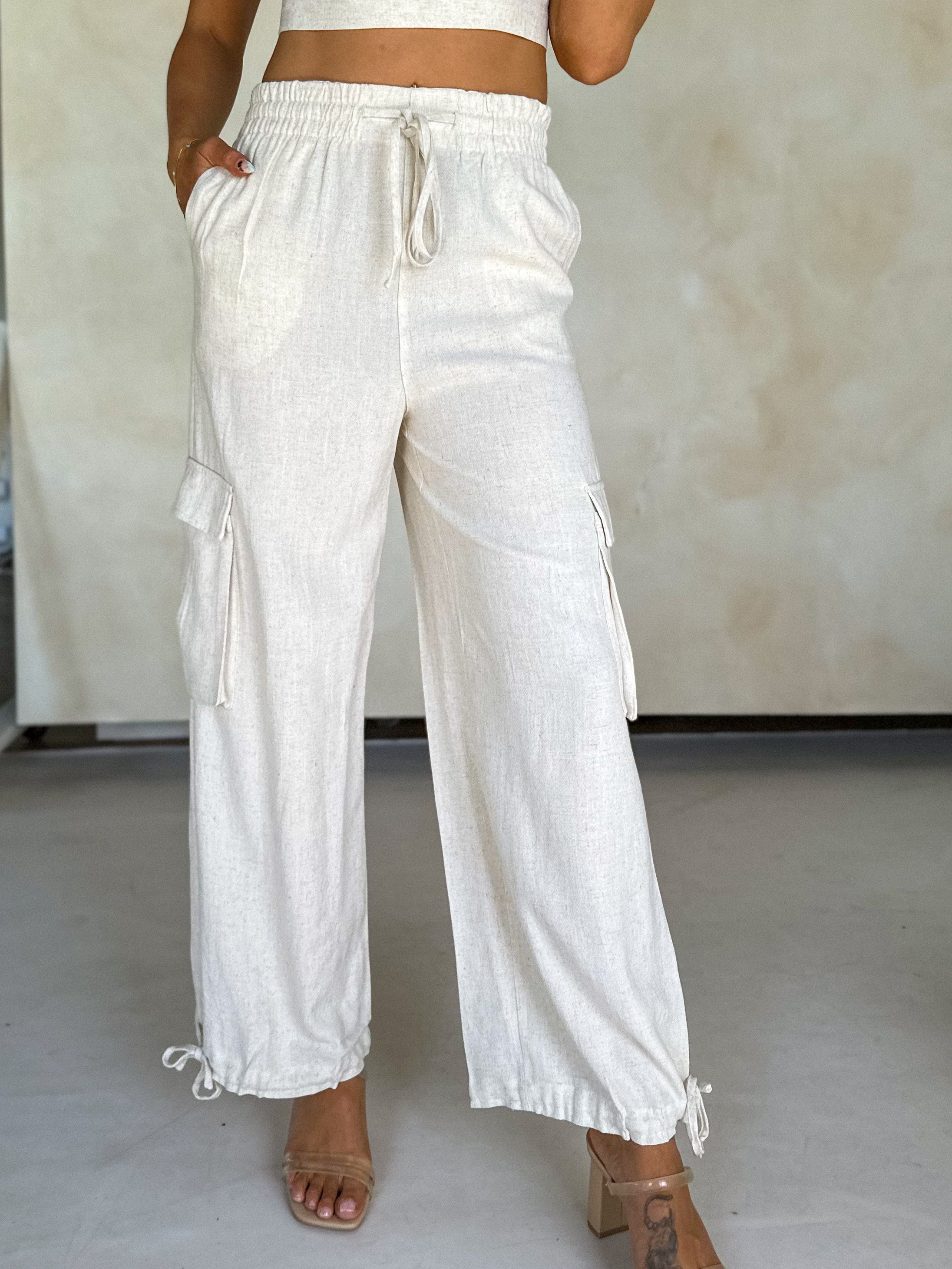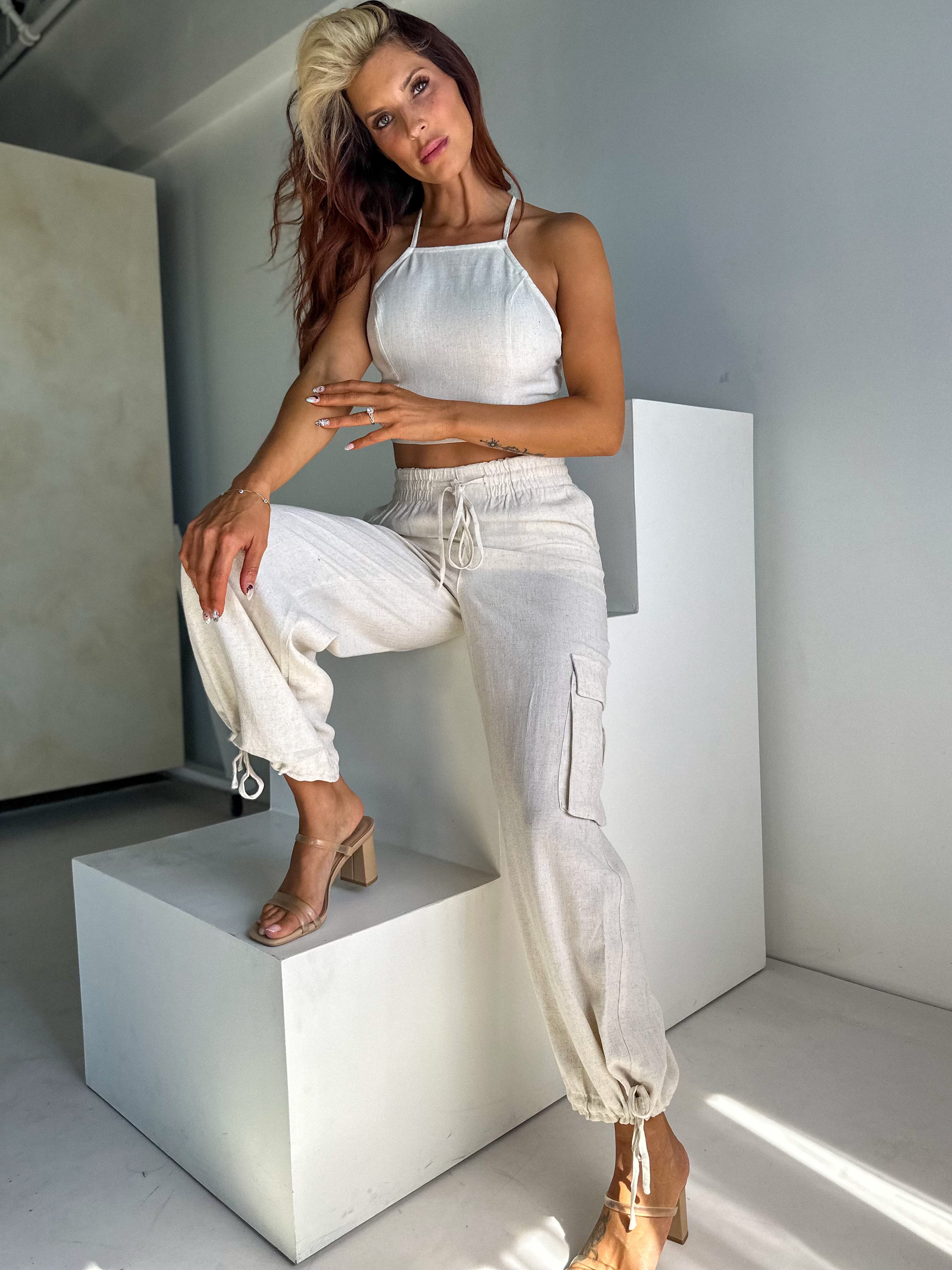 Tie Back Crop Tank With Cargo Pants Set - Oat