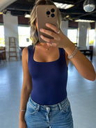 Square Neck Sleeveless Bodysuit - Navy