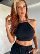 Tie Back Crop Tank With Cargo Pants Set - Black