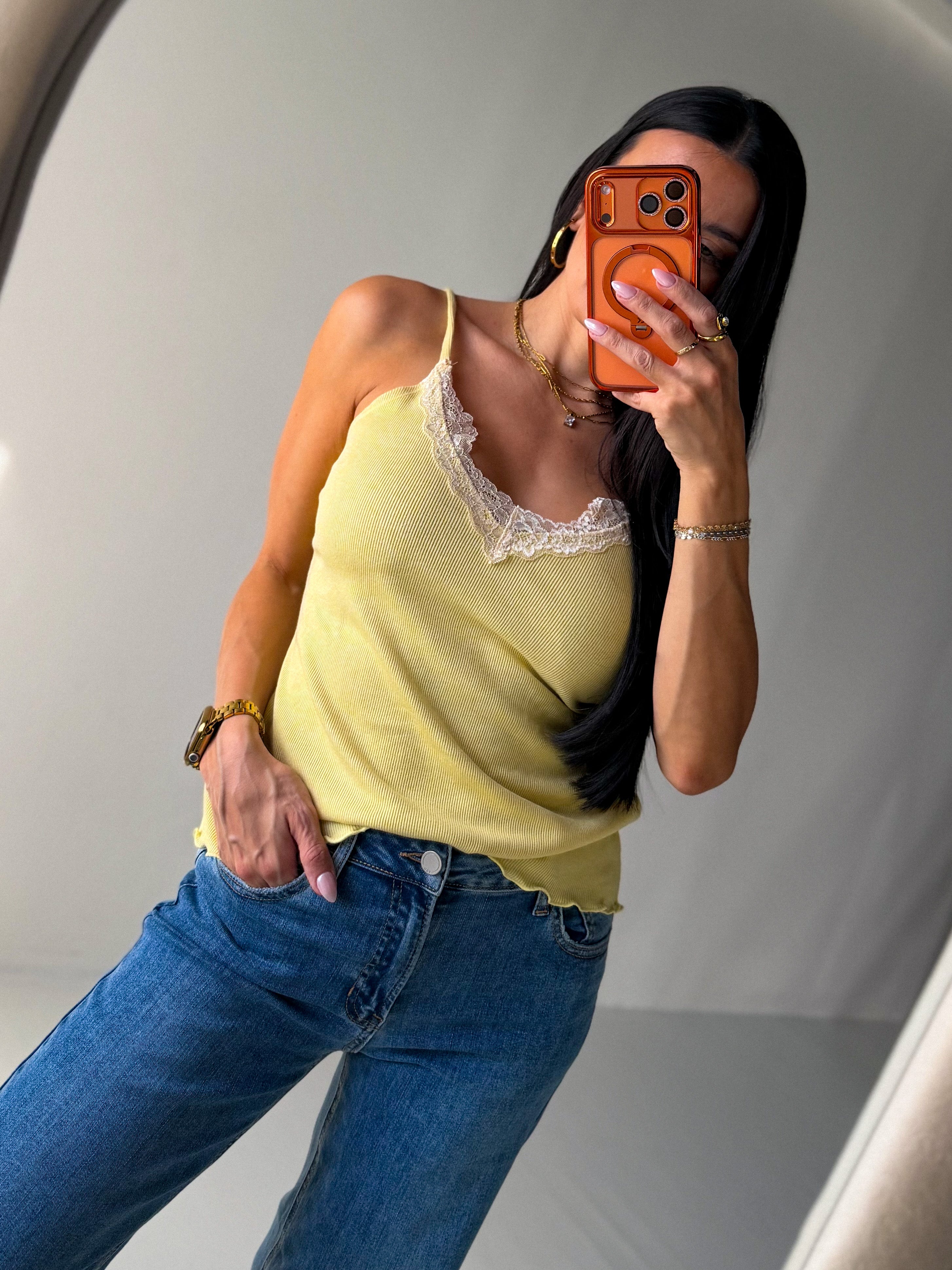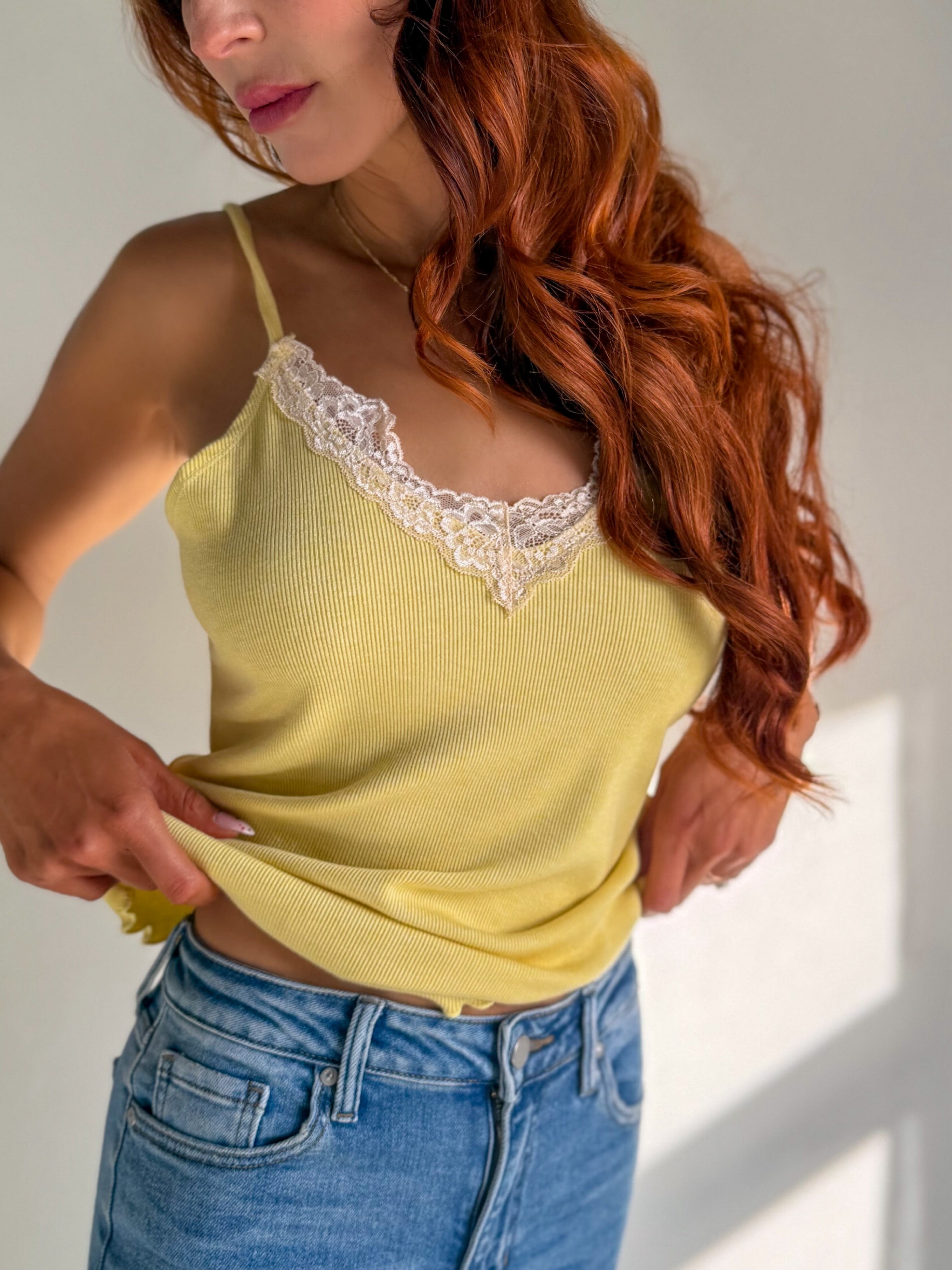 Lace Spaghetti Strap Camisole - Soft Lemon