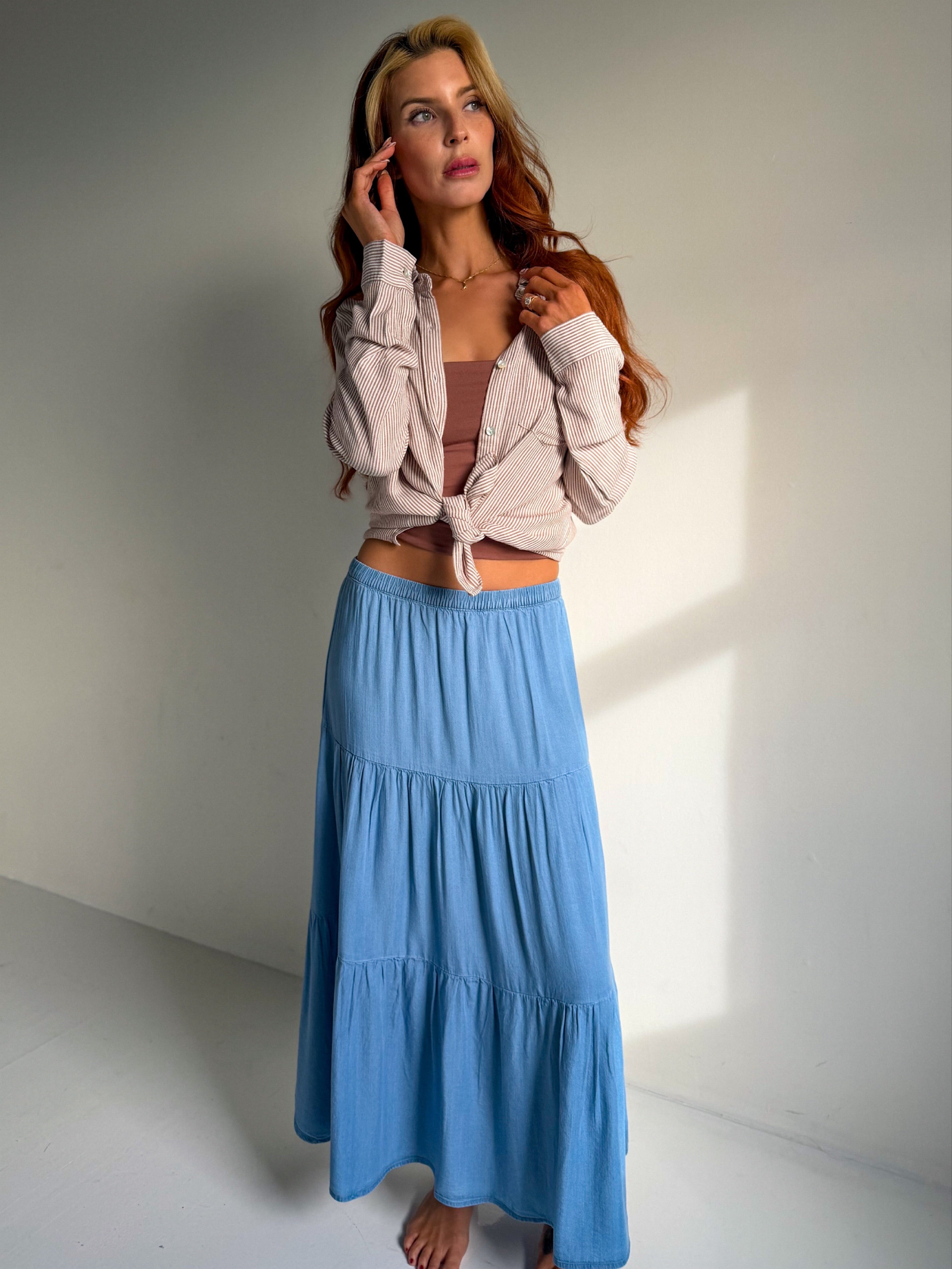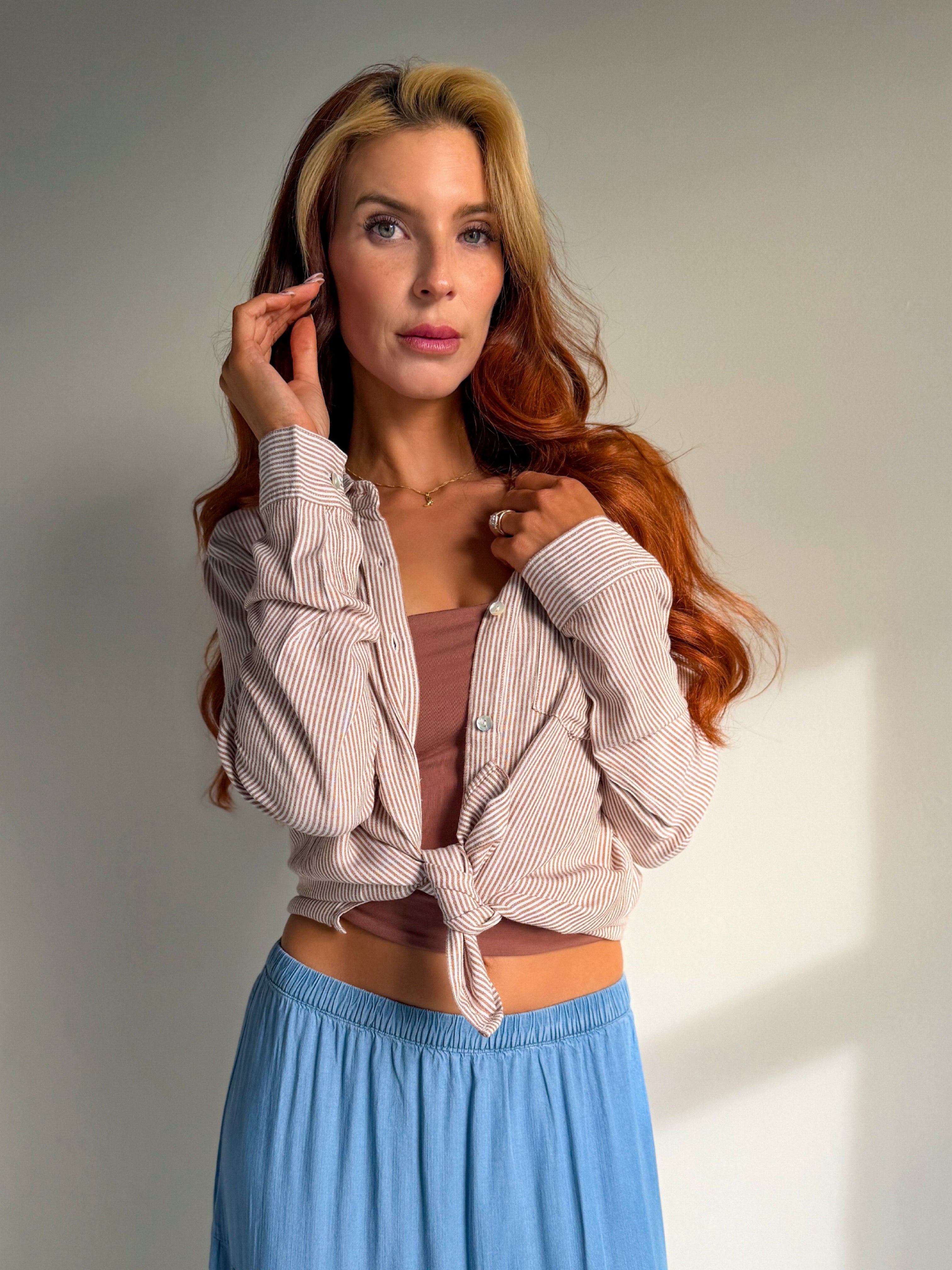 Mocha Striped Long Sleeve Collared Button Up Shirt