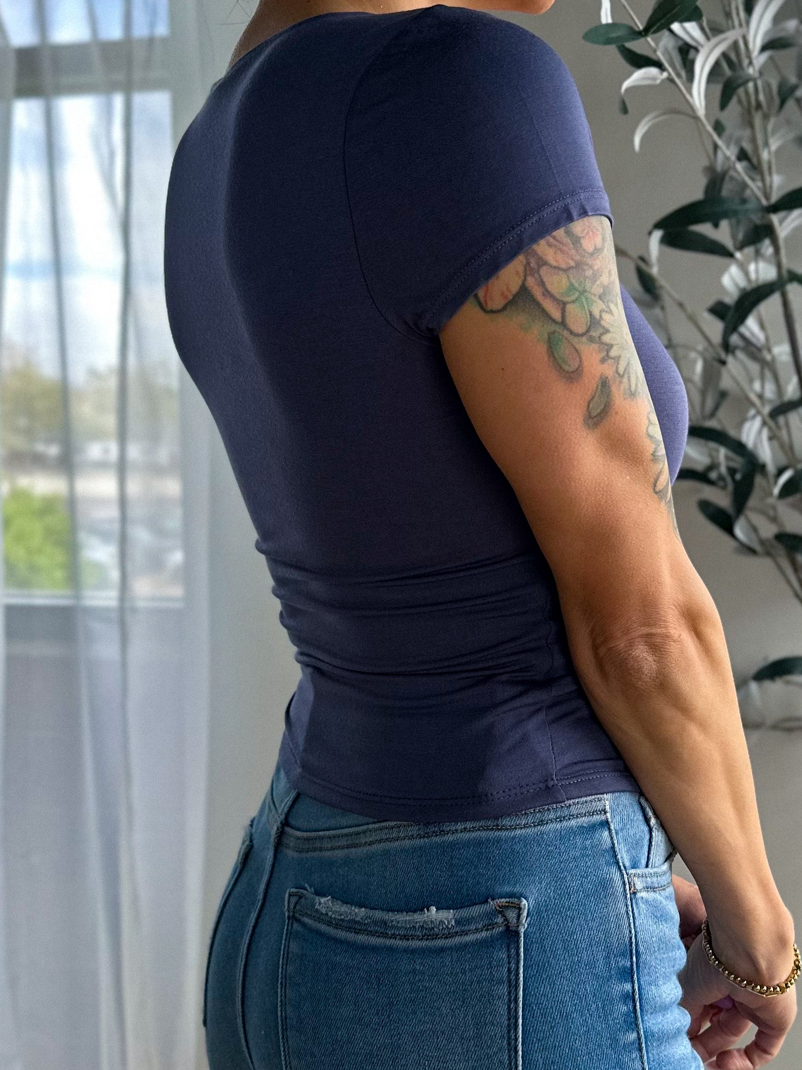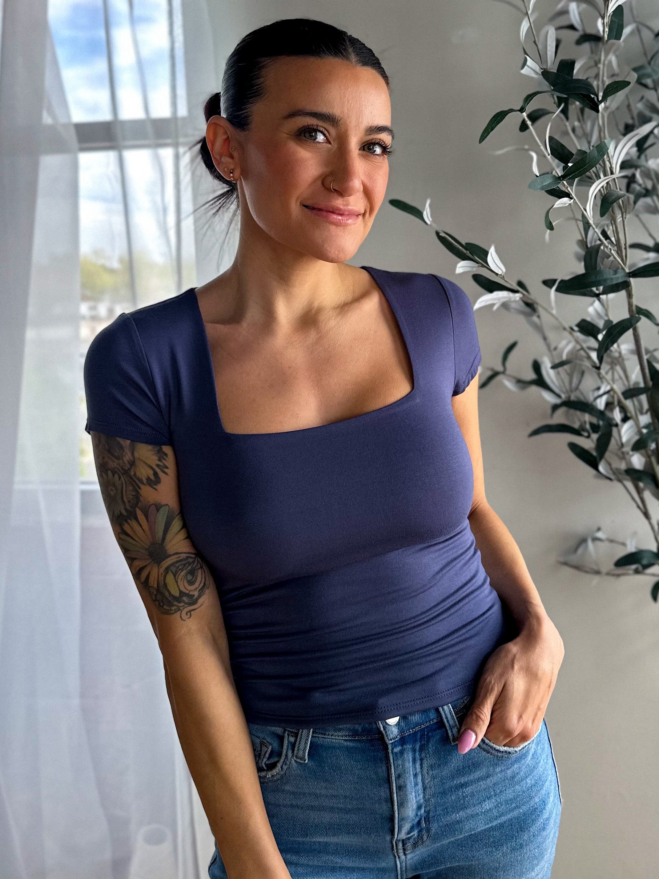 Square Neck Short Sleeve - Slate Blue