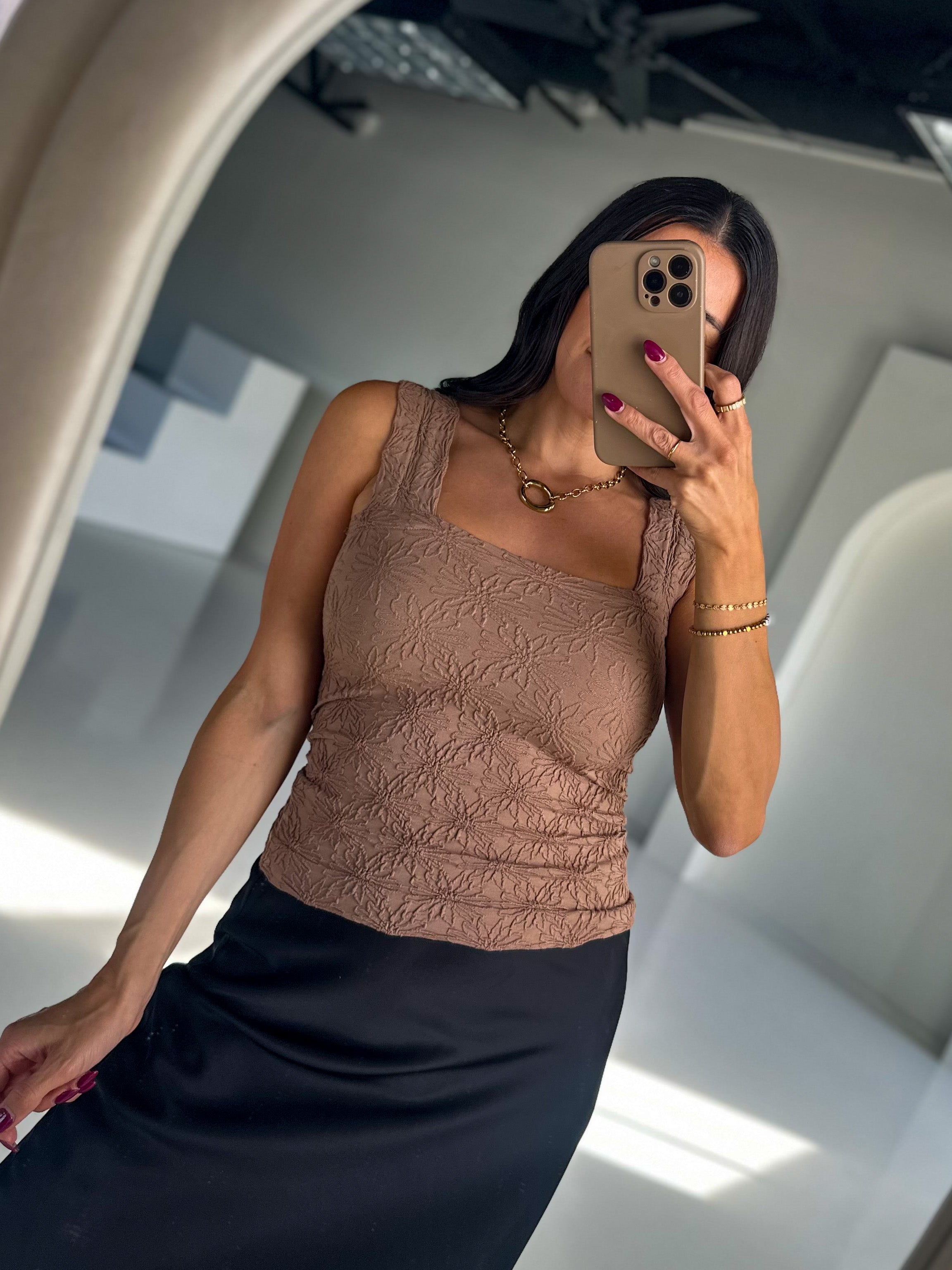 'Your New Favorite Tank', Boatneck, CROP - Mocha