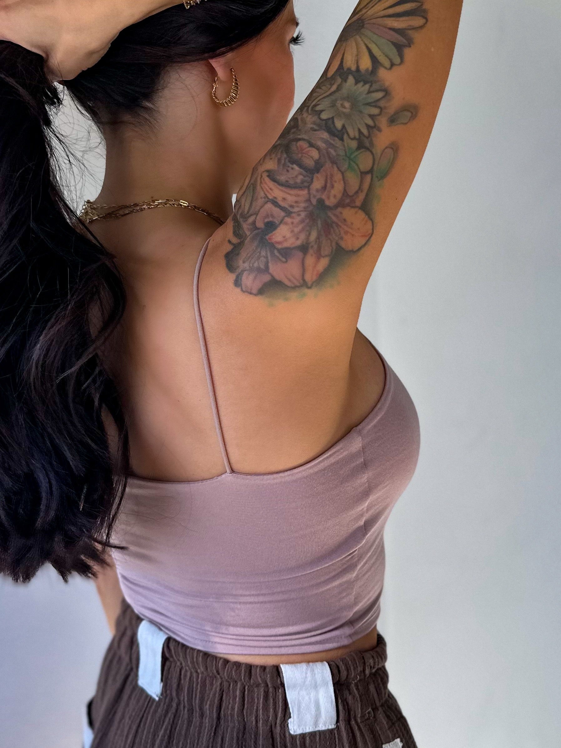 'Your New Favorite Tank', V-Neck W/ Full Coverage Back - Chocolate