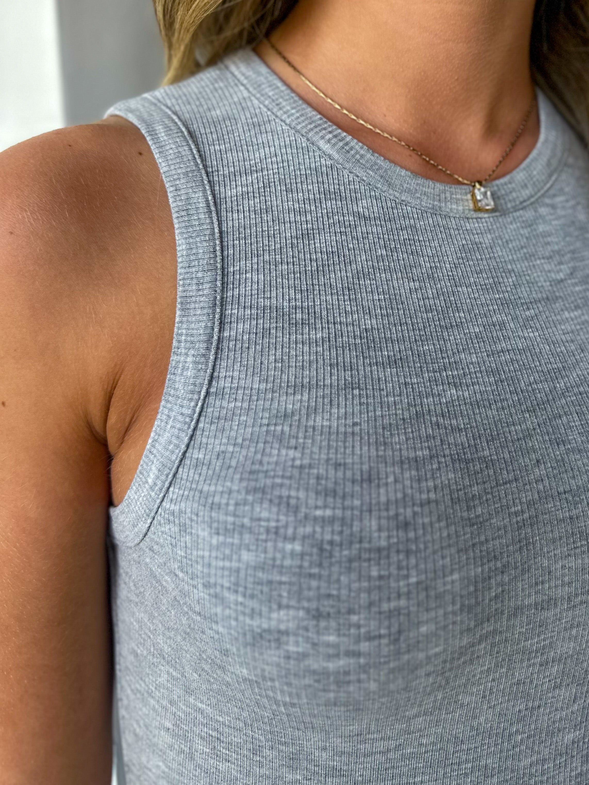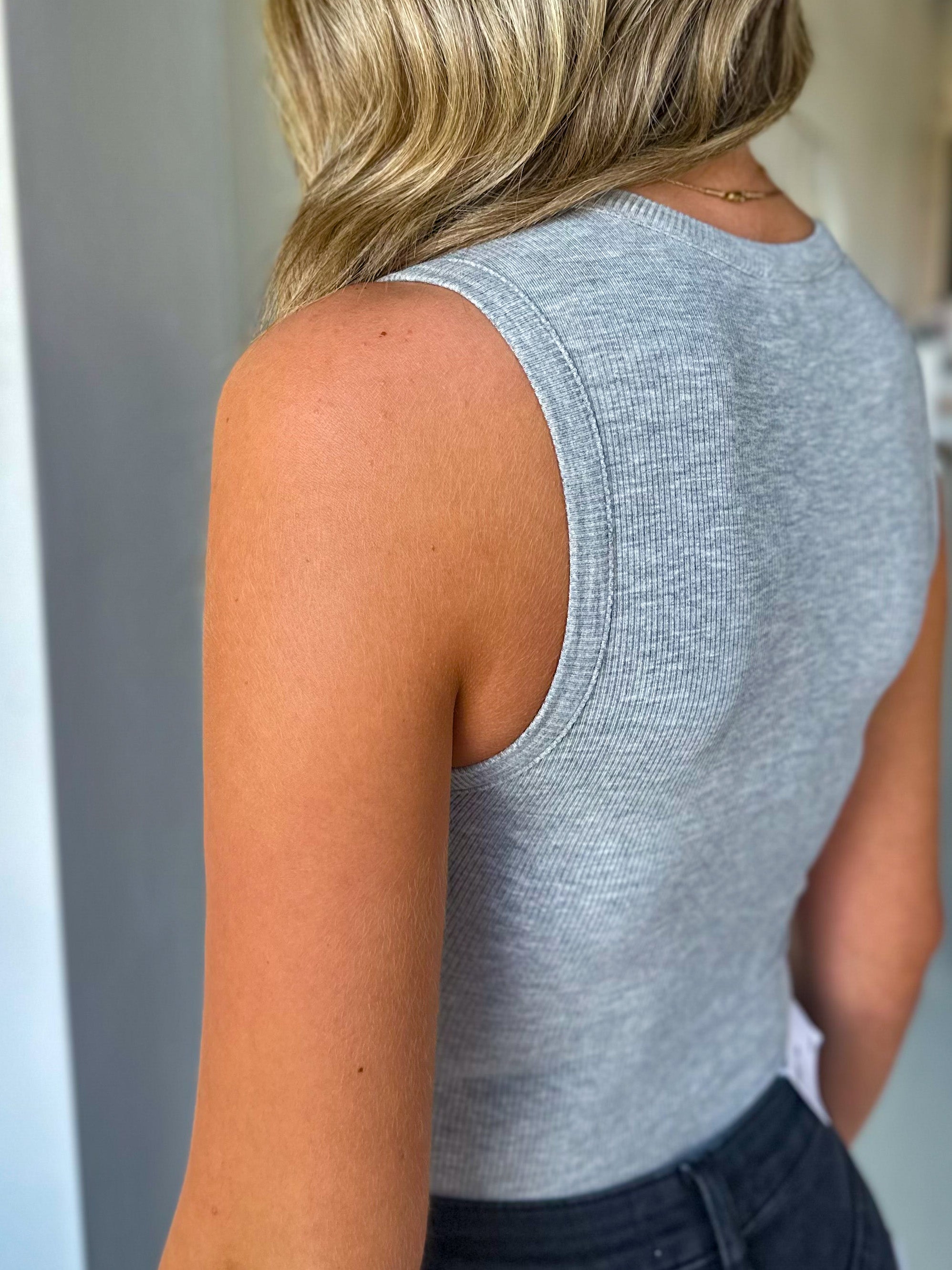 Ribbed Sleeveless Bodysuit - Heather Grey