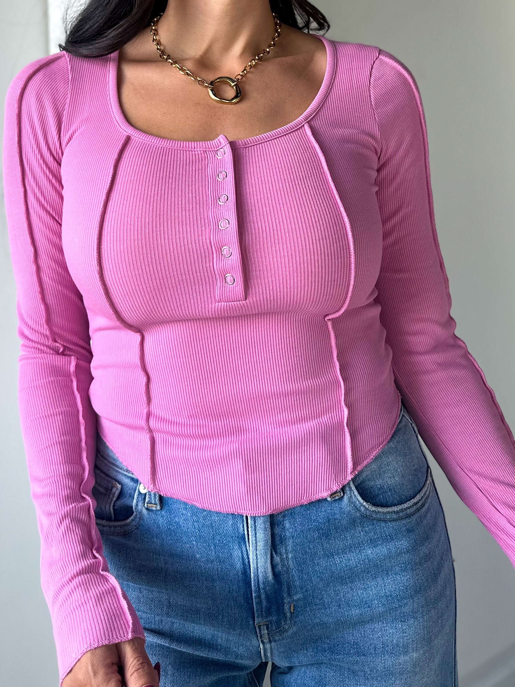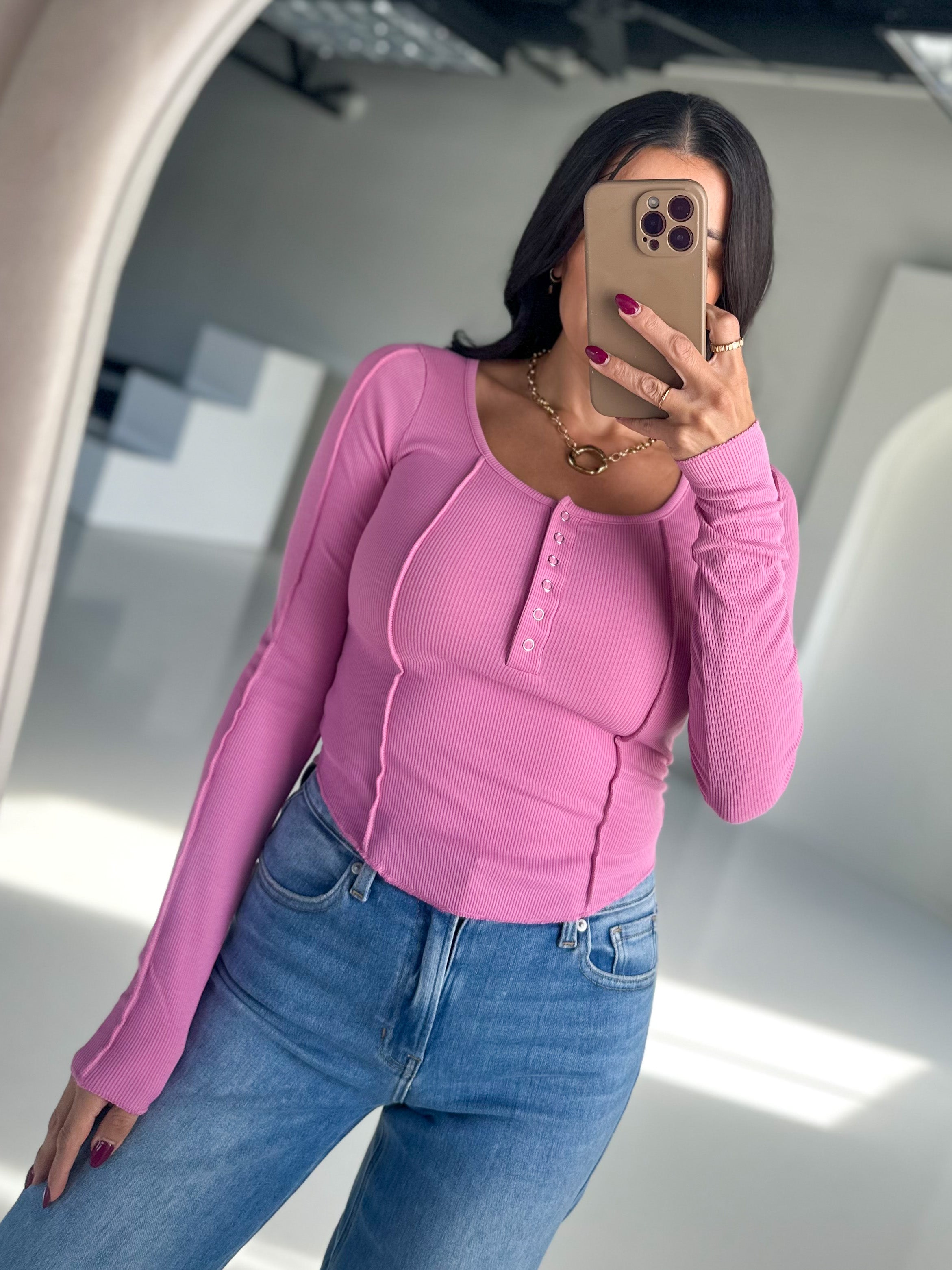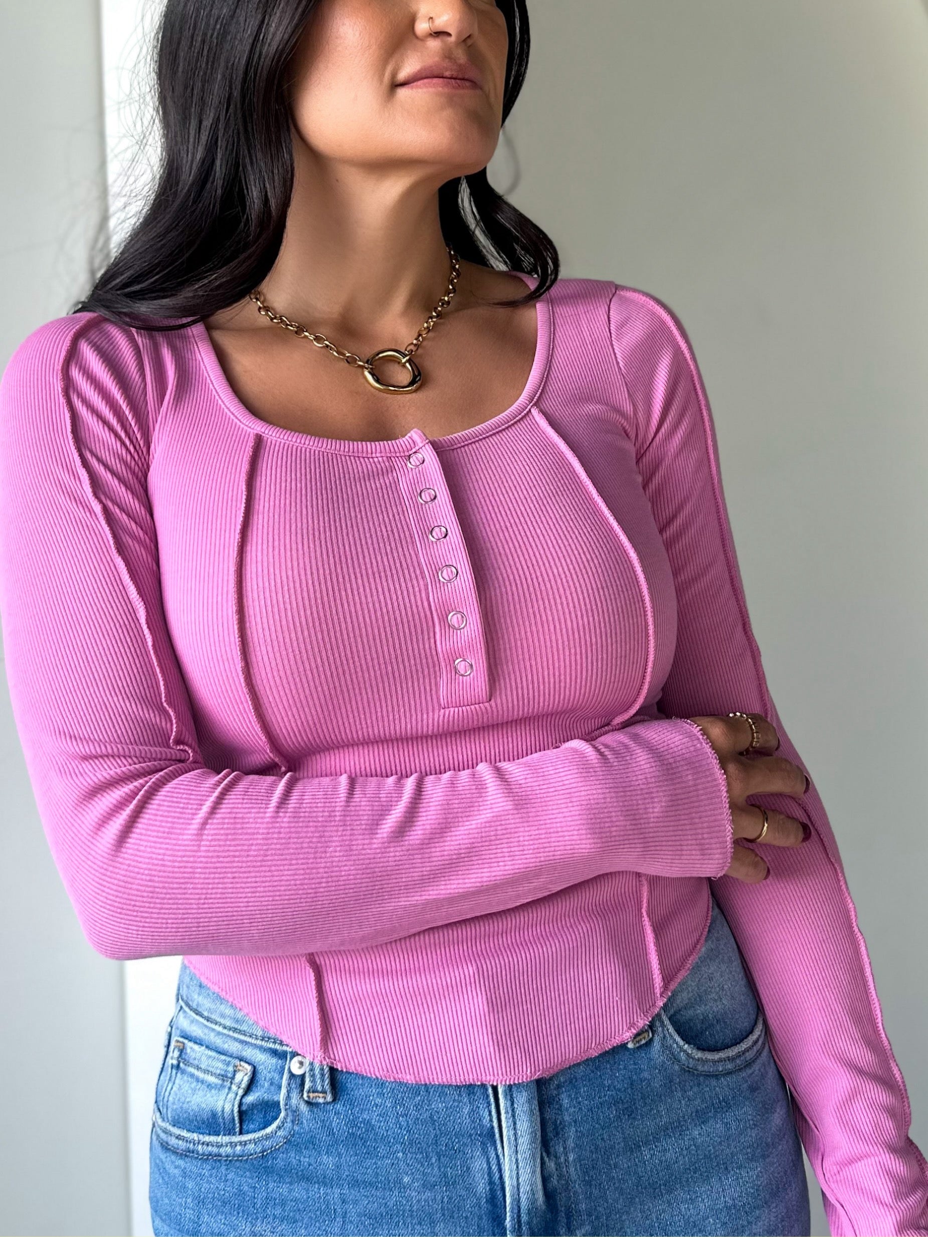 Scoop Neck Long Sleeve - Bubblegum Pink