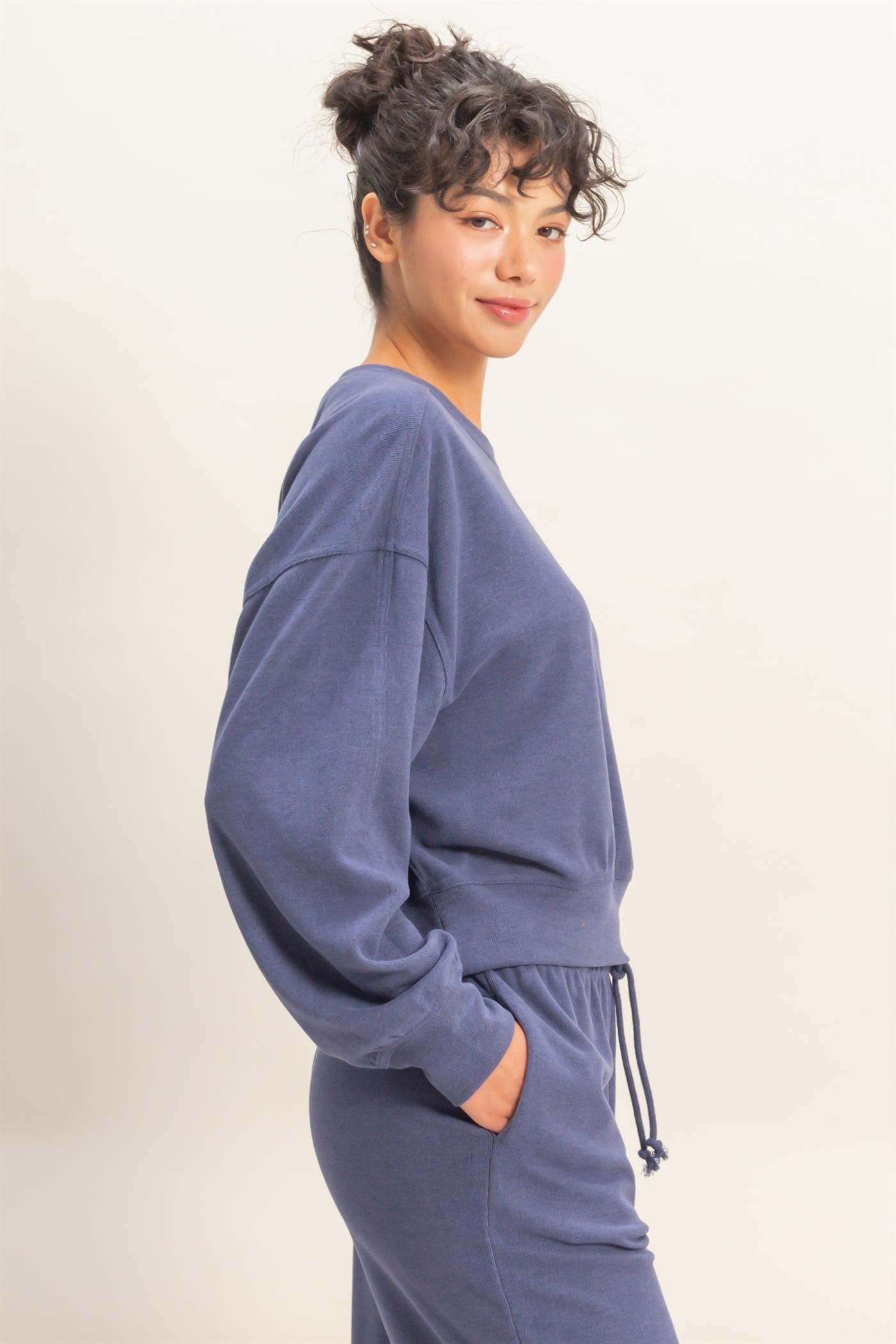 Cozy Mirco Ribbed Relaxed Sweatshirt - Indigo